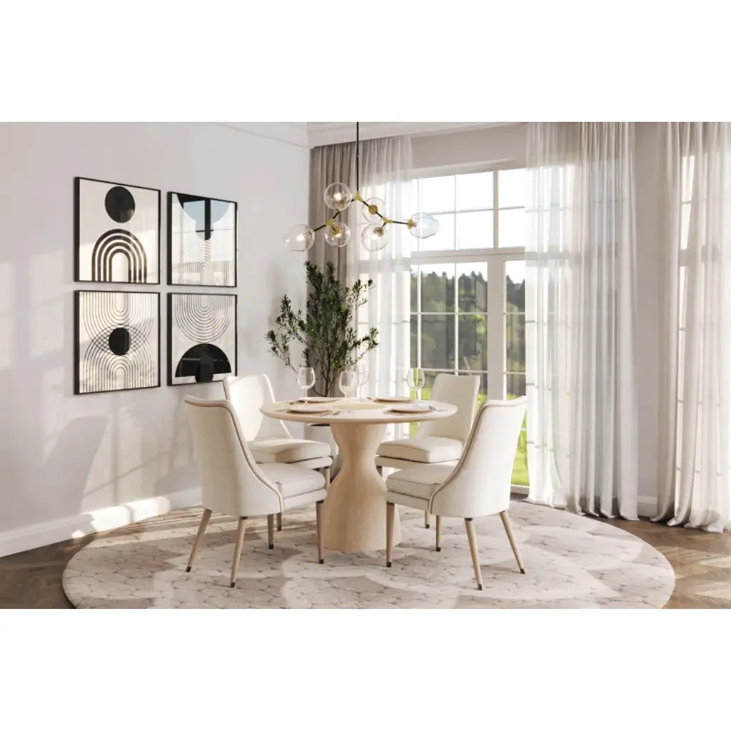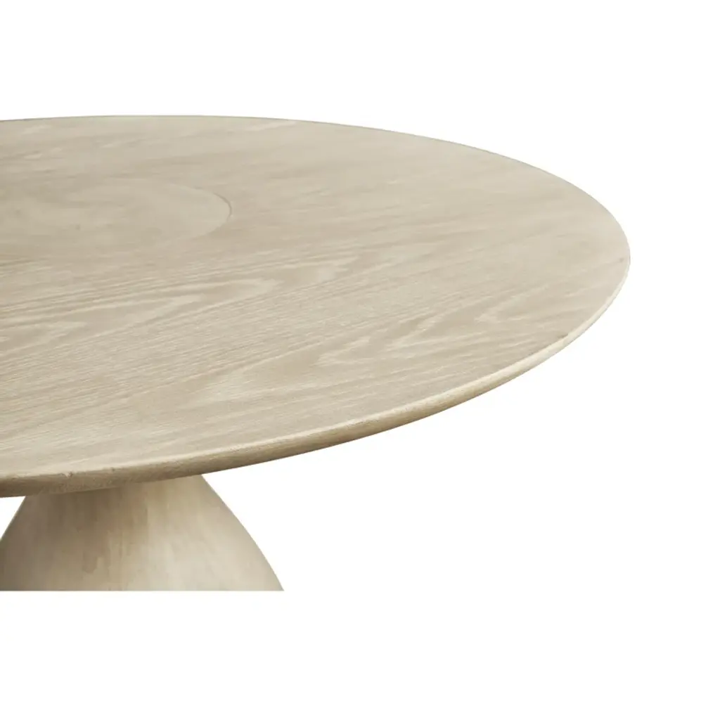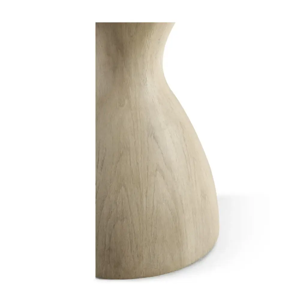 The Seamount oak pedestal table from Jonathan Charles's bespoke Water portfolio has a visually descriptive elegance all its own. Unending symmetry, remarkable simplicity, and true down-to-earth balance come together in expertly crafted solid hardwoods and veneers finished in bleached oak. A wood top features a center cut out revealing the stump end grain for a dynamic focal point.