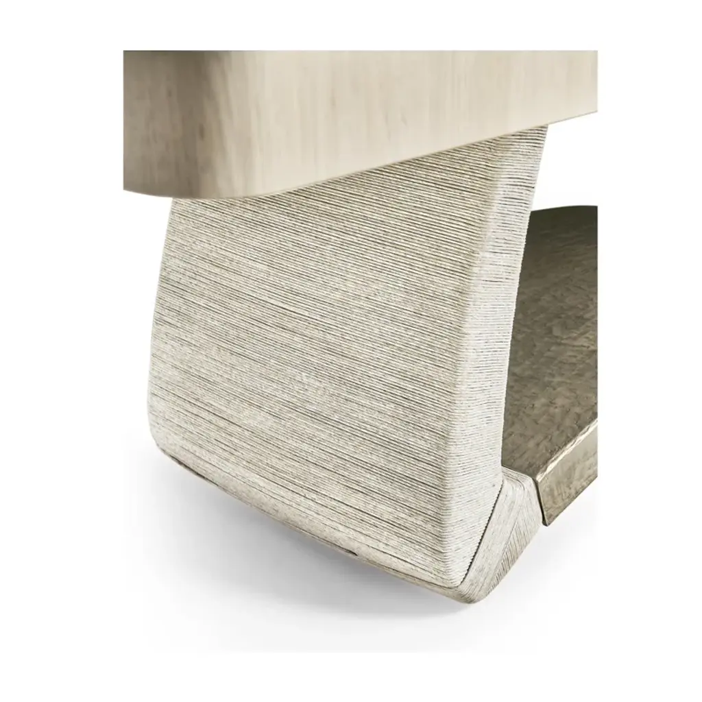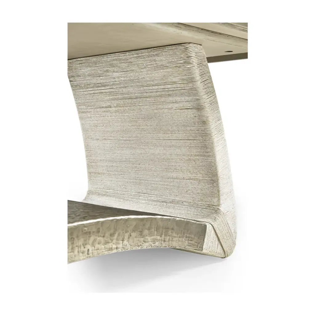 Inspired by 40s and 50s Danish design, Swell features a loping pedestal wrapped in a whitewashed Danish cord. A bleached oak top extends to 120" and adds understated elegance, complimented by a stainless steel base in a white satin finish. Swell's light and airy palette enhances tropical and modern spaces alike.