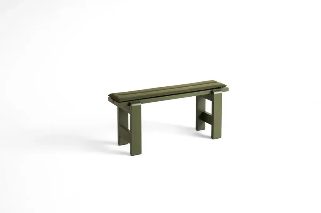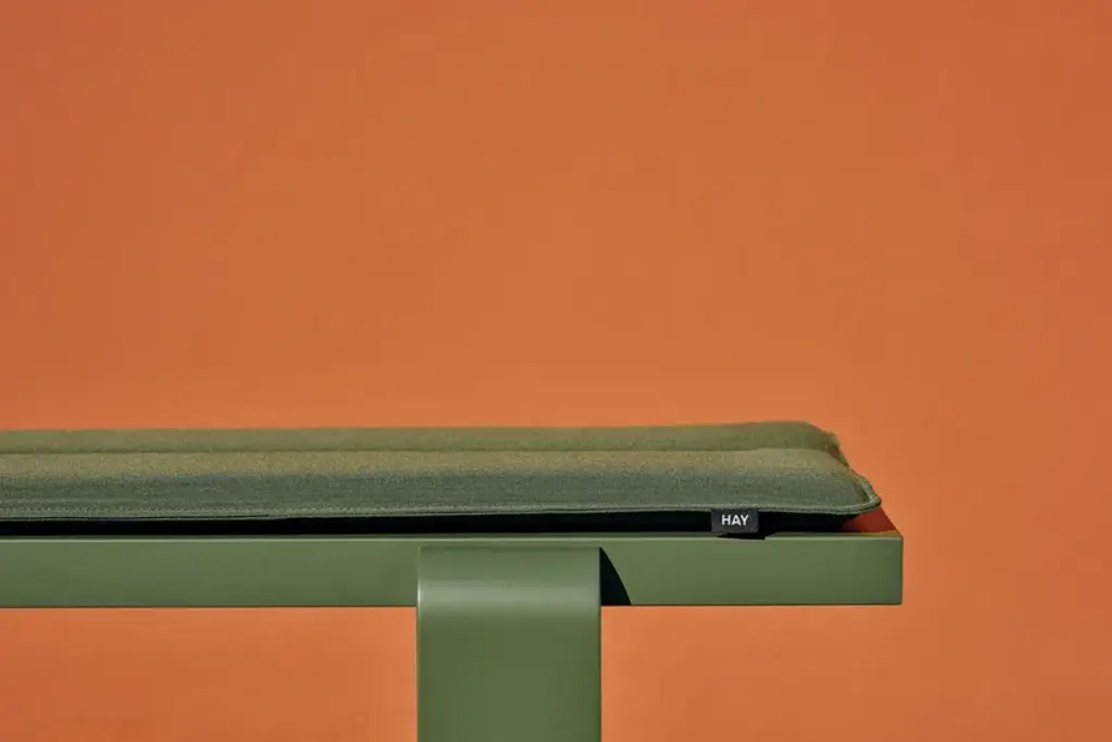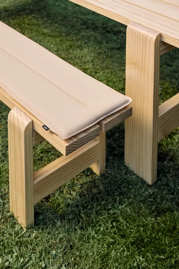 Adding extra comfort and functionality to the Weekday Bench, the Weekday Cushion is specially formed to fit the different bench models. Lightly padded, it features a convenient button fastening underneath the seat that keeps the cushion securely in place. The fabric is Teflon®-coated for a water-repellent finish and has a high UV resistance, meaning it is fade-resistant with good colour fastness properties. The cushions are available in different sizes and colours and can be used all year roundFirst designed as an impromptu solution to a lack of seating at a dinner party, designers Hannes & Fritz refined their idea to create Weekday – a collection of outdoor benches and tables for HAY. Retaining the original idea of bringing people together, Weekday’s solid, robust presence and softly rounded joints convey a sense of warmth and familiarity that invites shared dining and a social atmosphere. Featuring the same construction as the classic picnic table and bench, Weekday is made in strong, durable pine planks that will patinate beautifully and last for many years to come. Weekday’s strong yet universally appealing character combined with its multiple size options and water-based, weather-resistant surface treatment makes it suitable for both inside and outside use in a wide range of settings, from cafés and public parks to private or shared gardens. Made in solid pine in different finishes and colour options, with the possibility to supplement benches with seat cushions in selected textiles for extra comfort