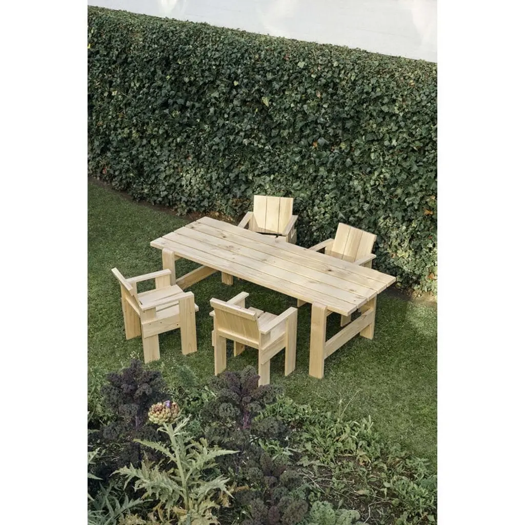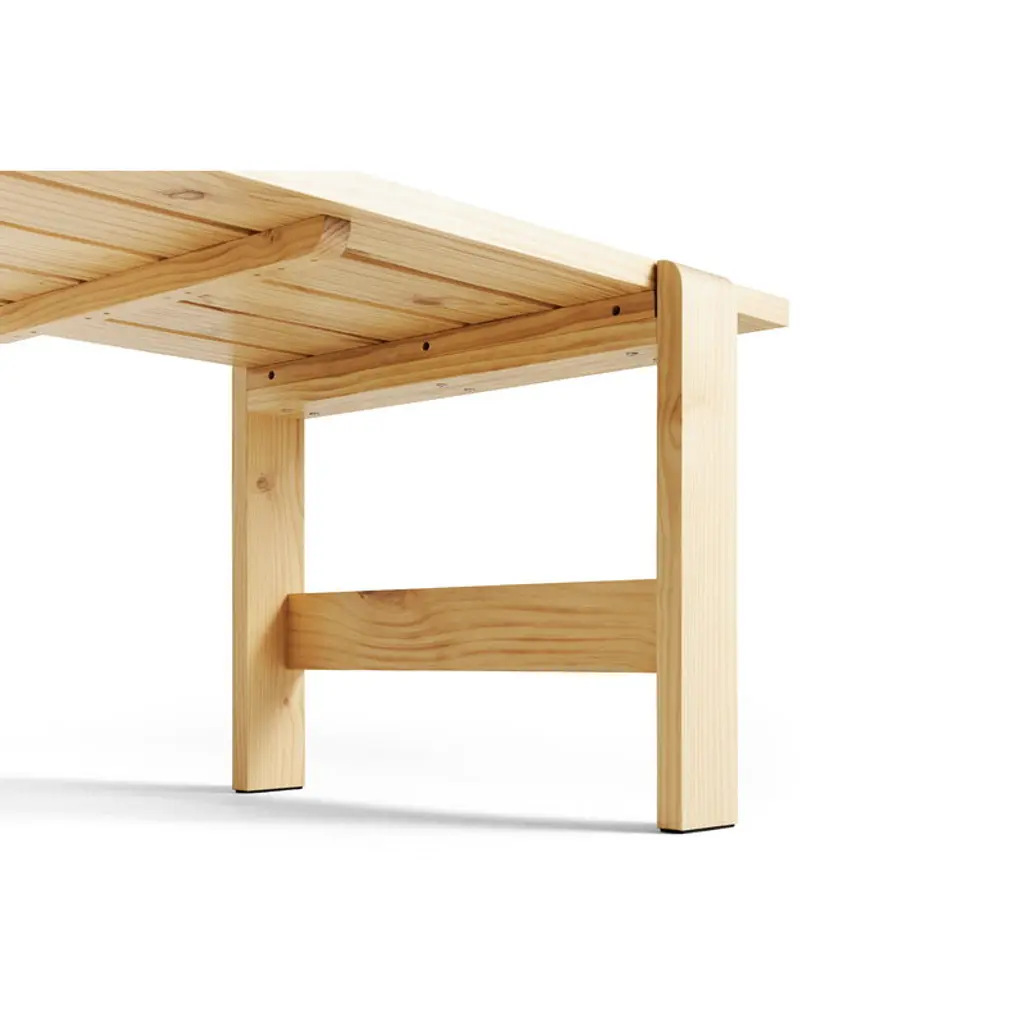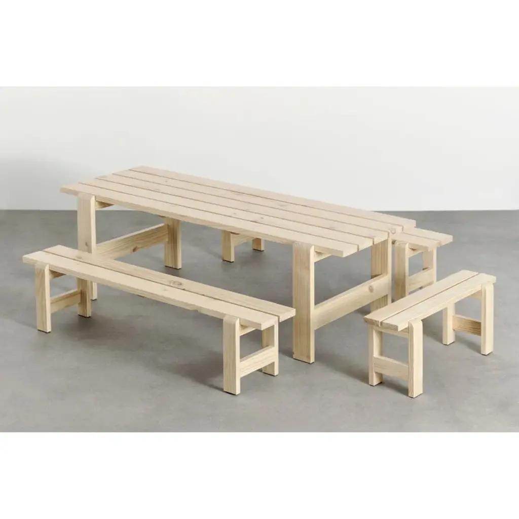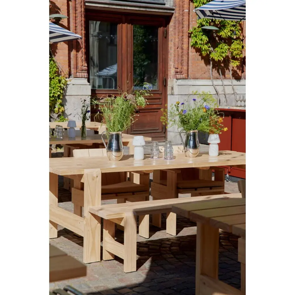 The Weekday table is part of HAY's collection of pine outdoor furniture. The table's recognizable, clean-lined look is a combination of massive legs and a slimmer table top. The dining table is a perfect match for the Weekday bench of the same design, but its simple look blends seamlessly with other materials and styles as well. The Weekday collection, created by Hannes & Fritz, is inspired by the idea of bringing people together to share both dinner and moments. The weather-proof finish keeps sure that the table is the centerpiece of barbecue evenings and outdoor dining, and the large tabletop can easily accommodate even a larger group of people. So feel free to invite an extra guest or two to your dinner party!