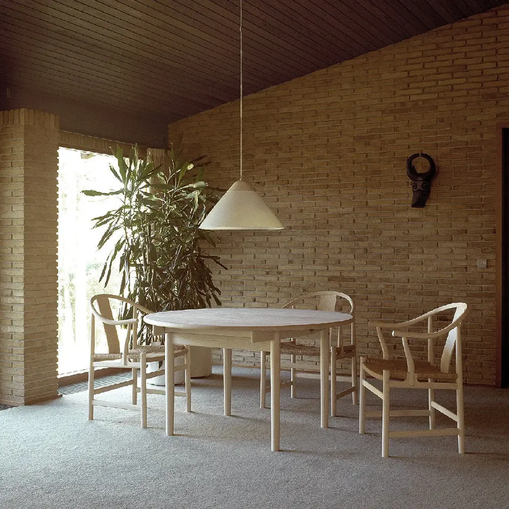 Wegner designed pp70 for PP Møbler in 1975, because he thought that many of his chairs lacked a suitable table of high quality. The idea behind this table was to create a simple and genuine, round dining table that would honour the uncompromising philosophy of woodwork as practiced by PP Møbler. The pp70 table is a strong testament to Wegner's enthusiastic process of gradually building up a product line for PP Møbler featuring only the very best of his works. In this context, the pp70 constitutes the basic round table. NOTE: Extension leaf in same wood as table top comes from the same log as table top. Extension leaf in veneer often differs from tabletop in color and structure. This item is made to order by some of the world's best furniture craftsmen using materials that are required to meet PP Mobler's exacting specifications. As such, lead times can vary and are subject to change.
