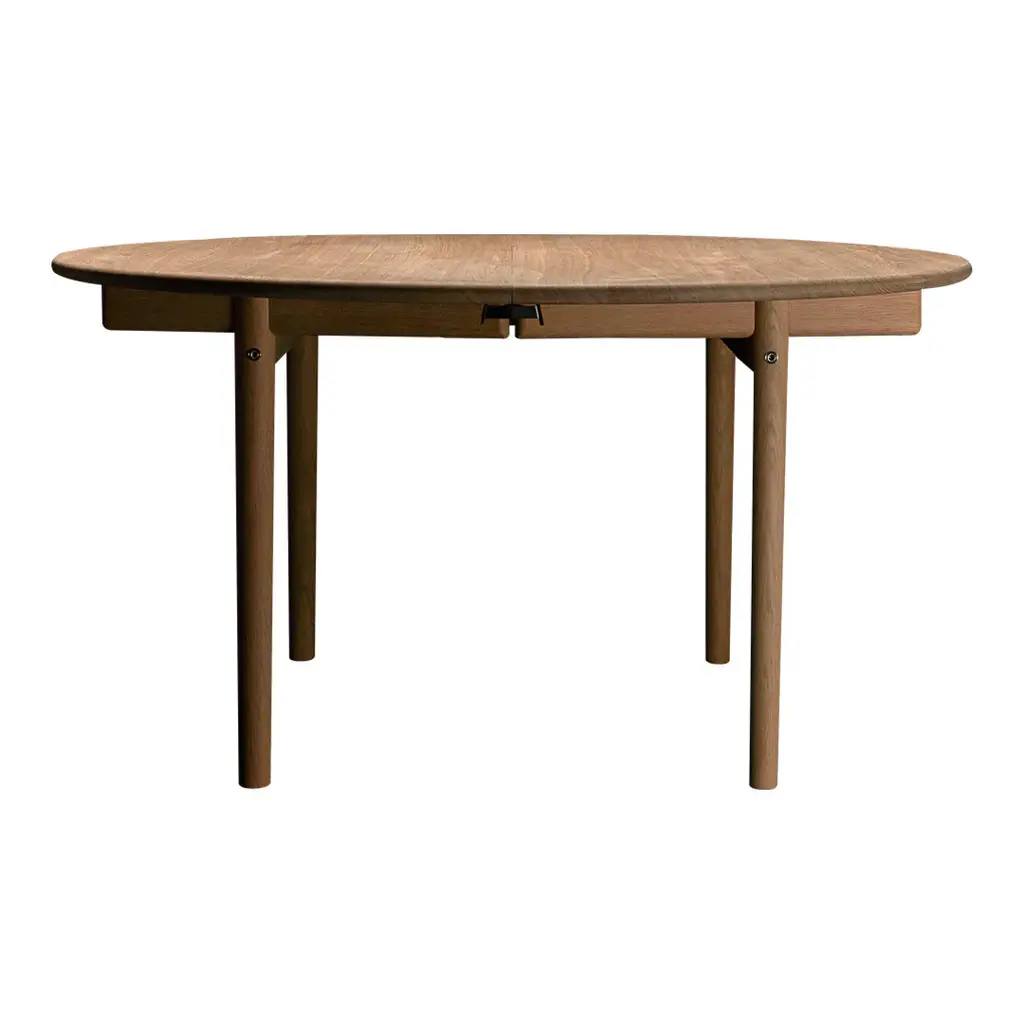 Wegner designed pp70 for PP Møbler in 1975, because he thought that many of his chairs lacked a suitable table of high quality. The idea behind this table was to create a simple and genuine, round dining table that would honour the uncompromising philosophy of woodwork as practiced by PP Møbler. The pp70 table is a strong testament to Wegner's enthusiastic process of gradually building up a product line for PP Møbler featuring only the very best of his works. In this context, the pp70 constitutes the basic round table. NOTE: Extension leaf in same wood as table top comes from the same log as table top. Extension leaf in veneer often differs from tabletop in color and structure. This item is made to order by some of the world's best furniture craftsmen using materials that are required to meet PP Mobler's exacting specifications. As such, lead times can vary and are subject to change.