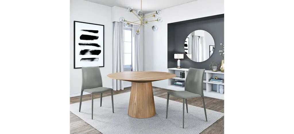 The Wesley Round Dining Table offers a clean and inviting design, making it perfect for any dining space.