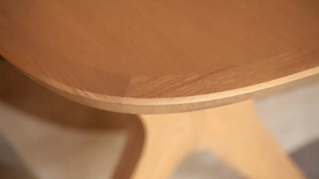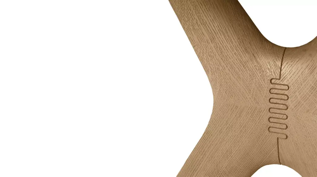 Always in search of beautiful woodworking details, Sacha Lakic designed the Whisper collection with a base featuring a fluted element of solid Oak joined by delicate assemblies highlighted by a subtle engraving. This detail is also present on the top.