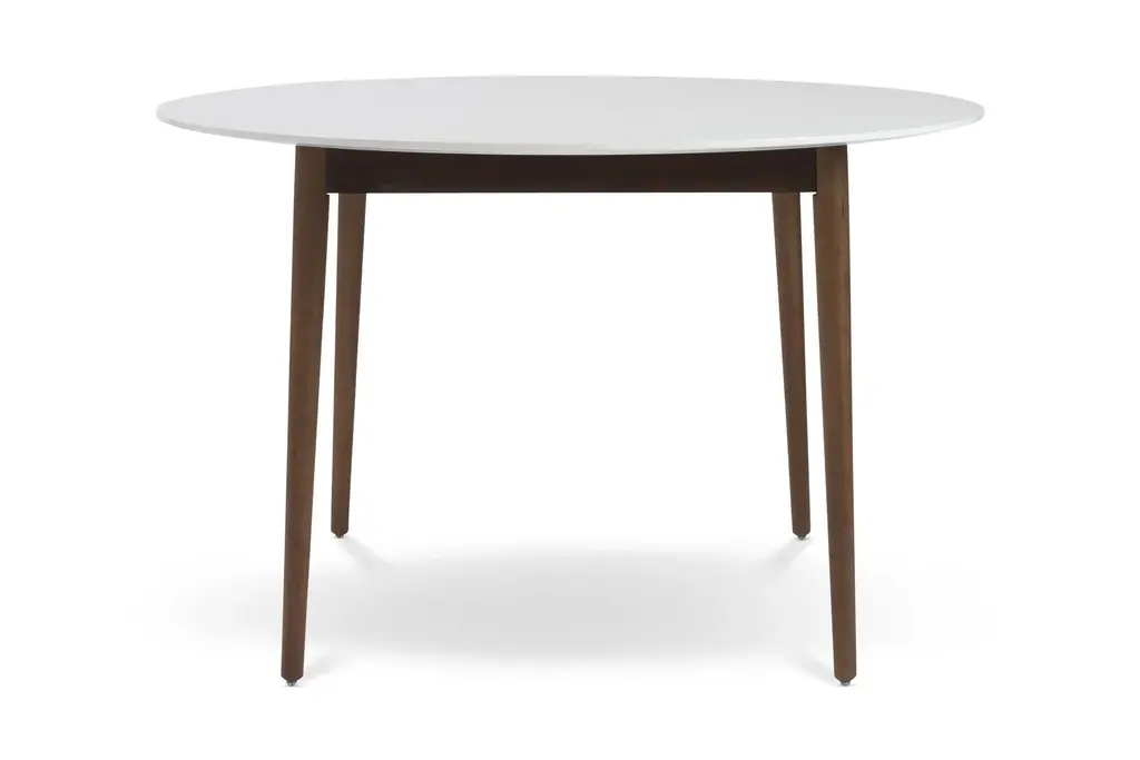 The Whitaker Round Dining Table is a contemporary take on a traditional style. The solid Ash frame is finished in a dark Walnut stain that's a glamorous homage to Mid Century Modern style. The sharp, clean, uncluttered design makes this a piece that will look incredible in any space. The lacquered surfaces keep the entire design looking neat and tidy. At 47"w this round dining table can seat 4 comfortably.
