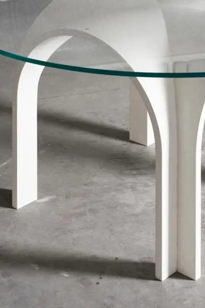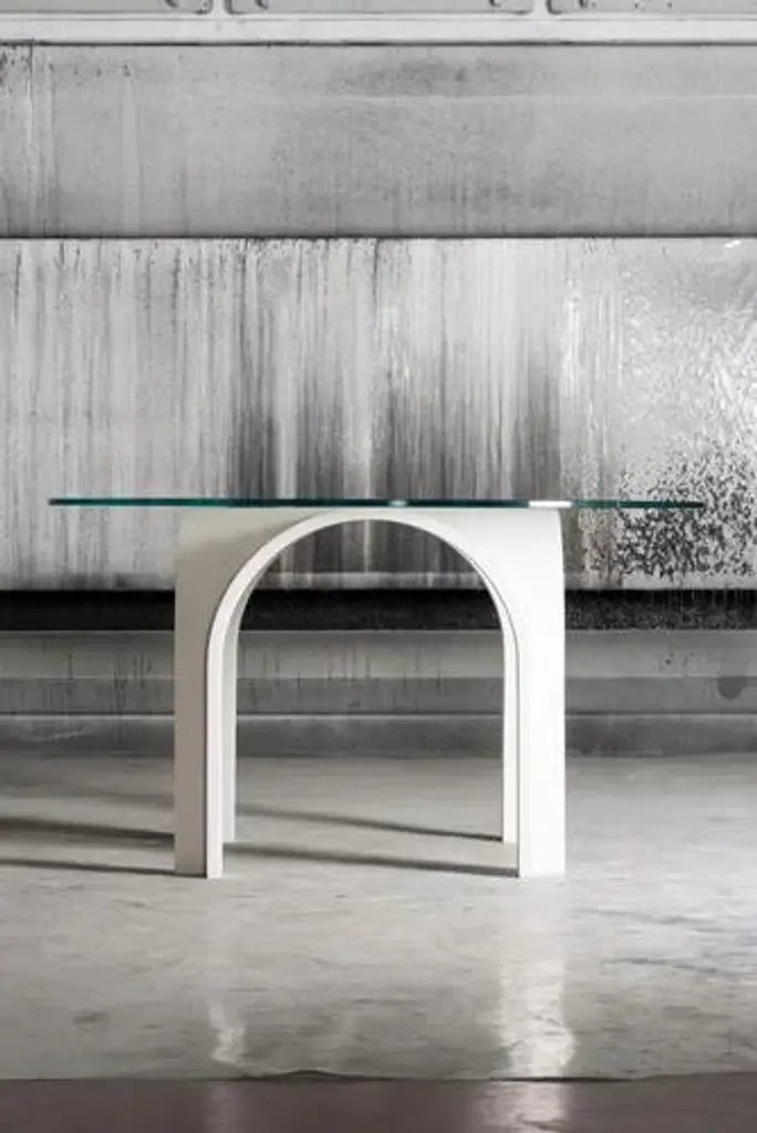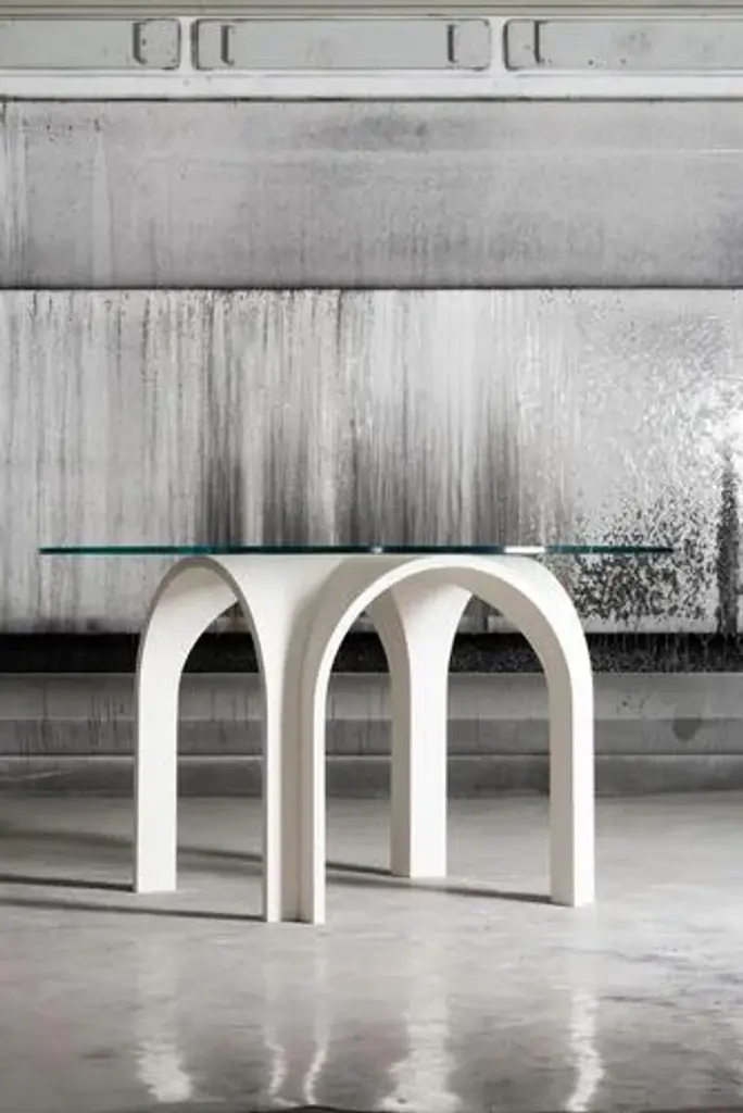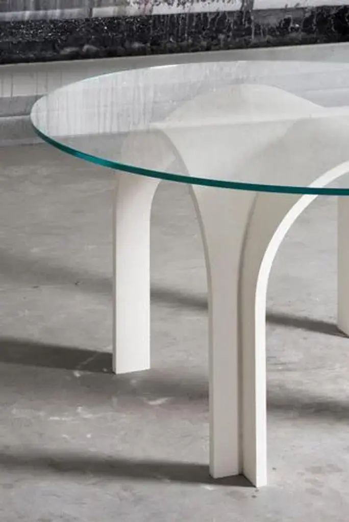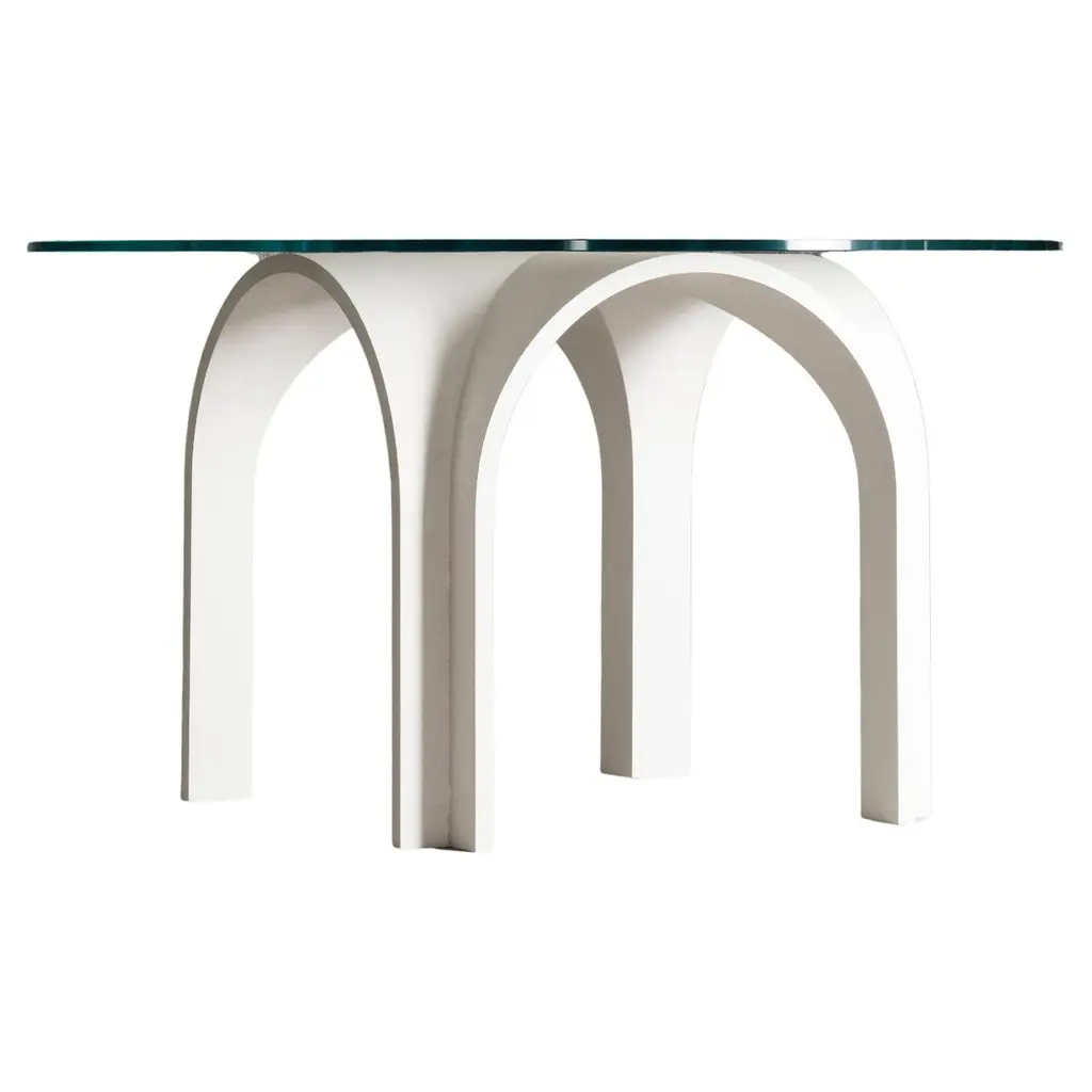 White Lacquer Wood Dining Table With Round Clear Glass Top By Antonio De Marco