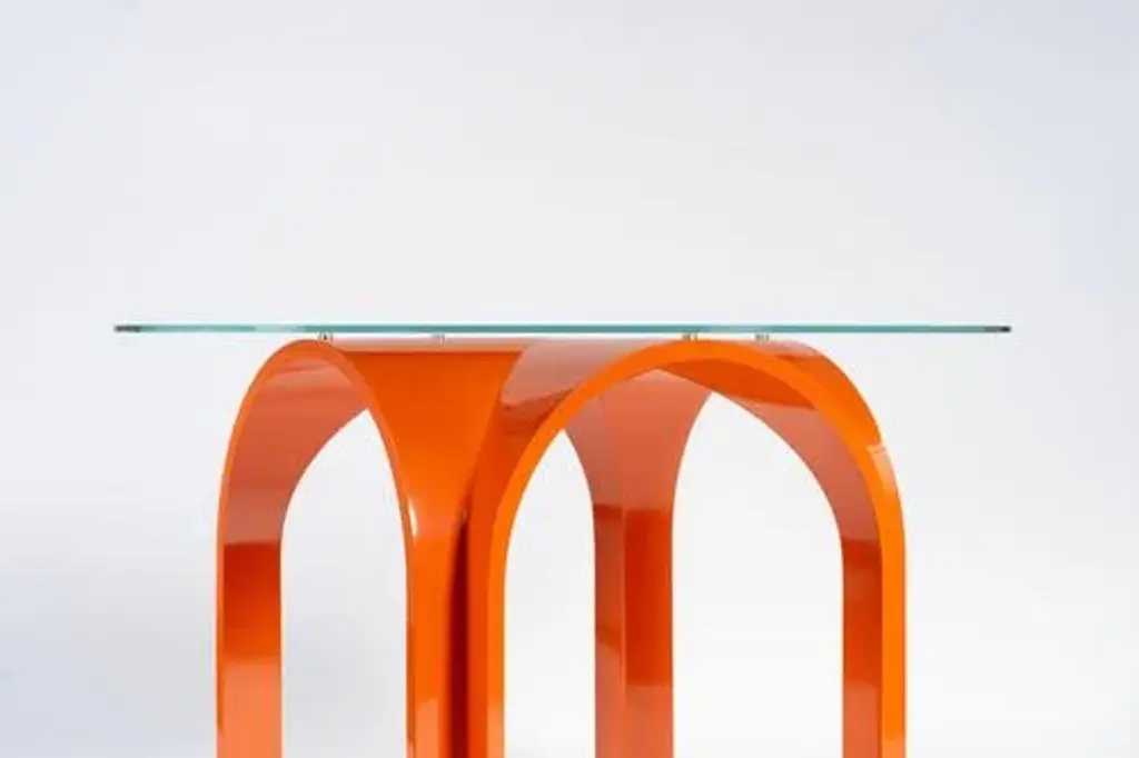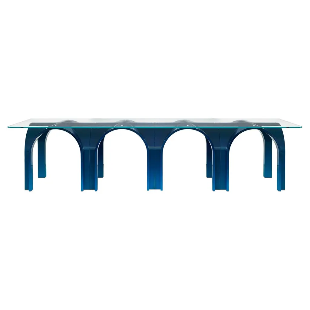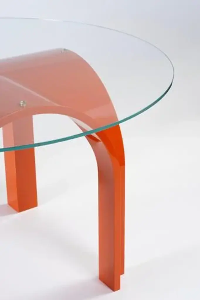 Laguna Dining Table with Lacquered Wood & Clear Glass Top by Antonio De Marco Dimensions: Ø 140 x H 77 cm. Materials: Wood and glass.