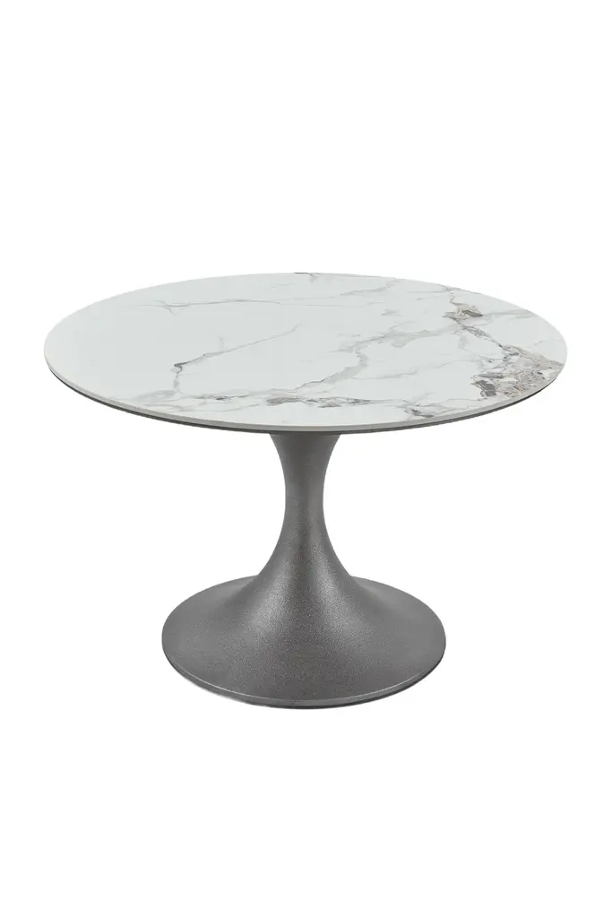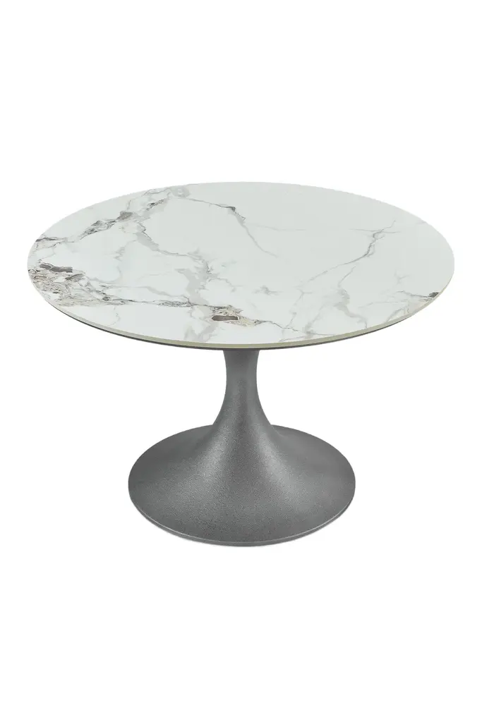 In a symphony of elegance and innovation, behold the Stella Dining Table. Crafted to captivate, its Patina Antique Silver base harmonizes with a the Marble Effect top.A vision of refinement, its captivating design boasts a base tapering into a circle, while the tabletop gracefully mirrors the shape. Suitable for both hospitality and residential projects, Stella adds a touch of sophistication to any dining room.Experience the allure of its striking tabletop and silver base, an embodiment of timeless luxury. Redefine your space with Stella, where every meal becomes an experience worth savoring.