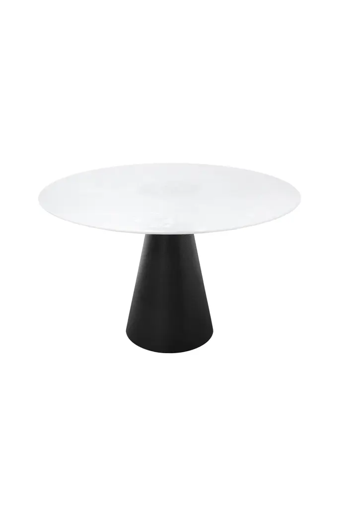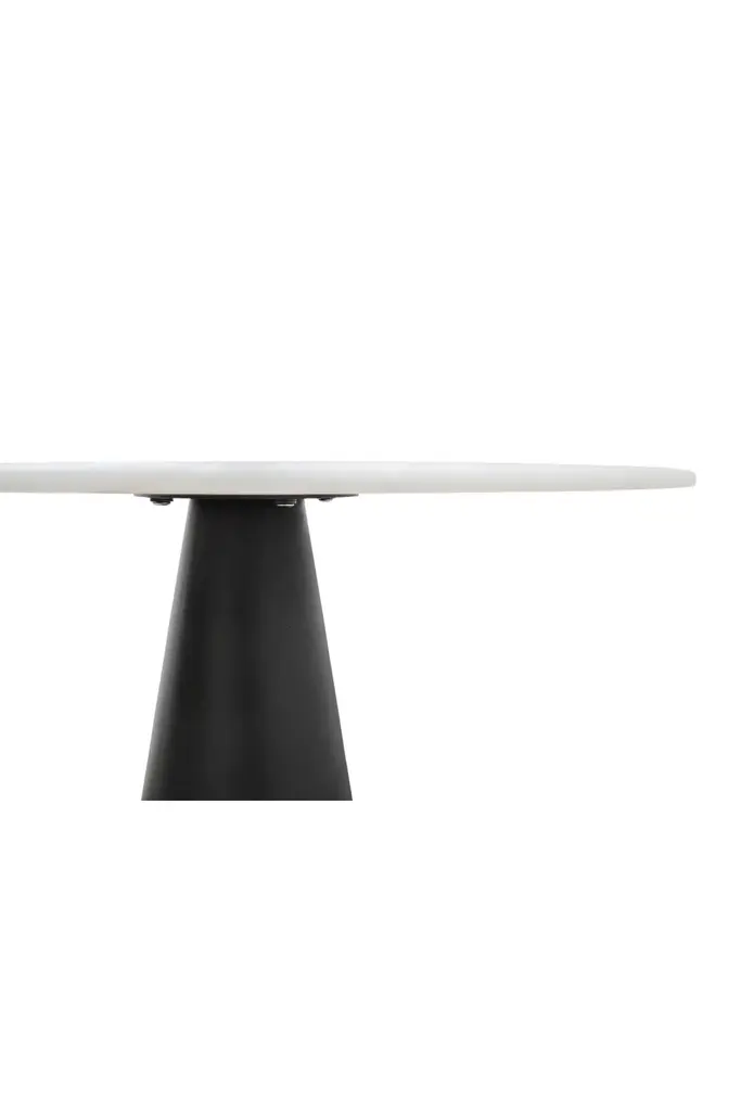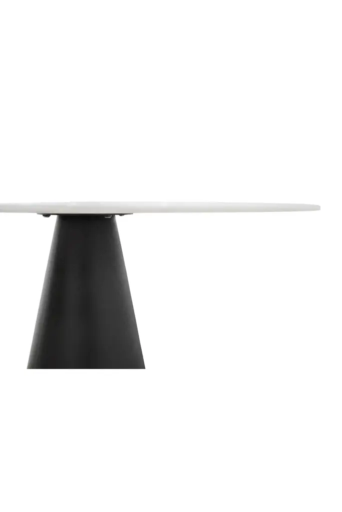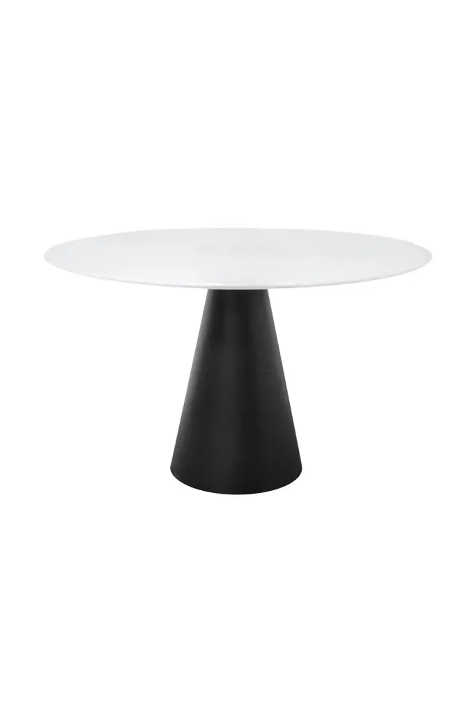 Incorporate the Dining Table Cone by Versmissen into your dining space for a touch of timeless modernity. It features a white round marble top and a conical black metal pedestal base, adding a contemporary twist to its classic silhouette. This table boasts chic aesthetics, making it a focal point in any dining space. With Versmissen's attention to detail and quality craftsmanship, the Cone dining table promises both style and durability for many years of unforgettable dining moments.