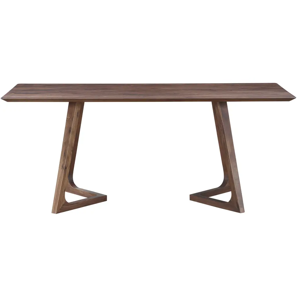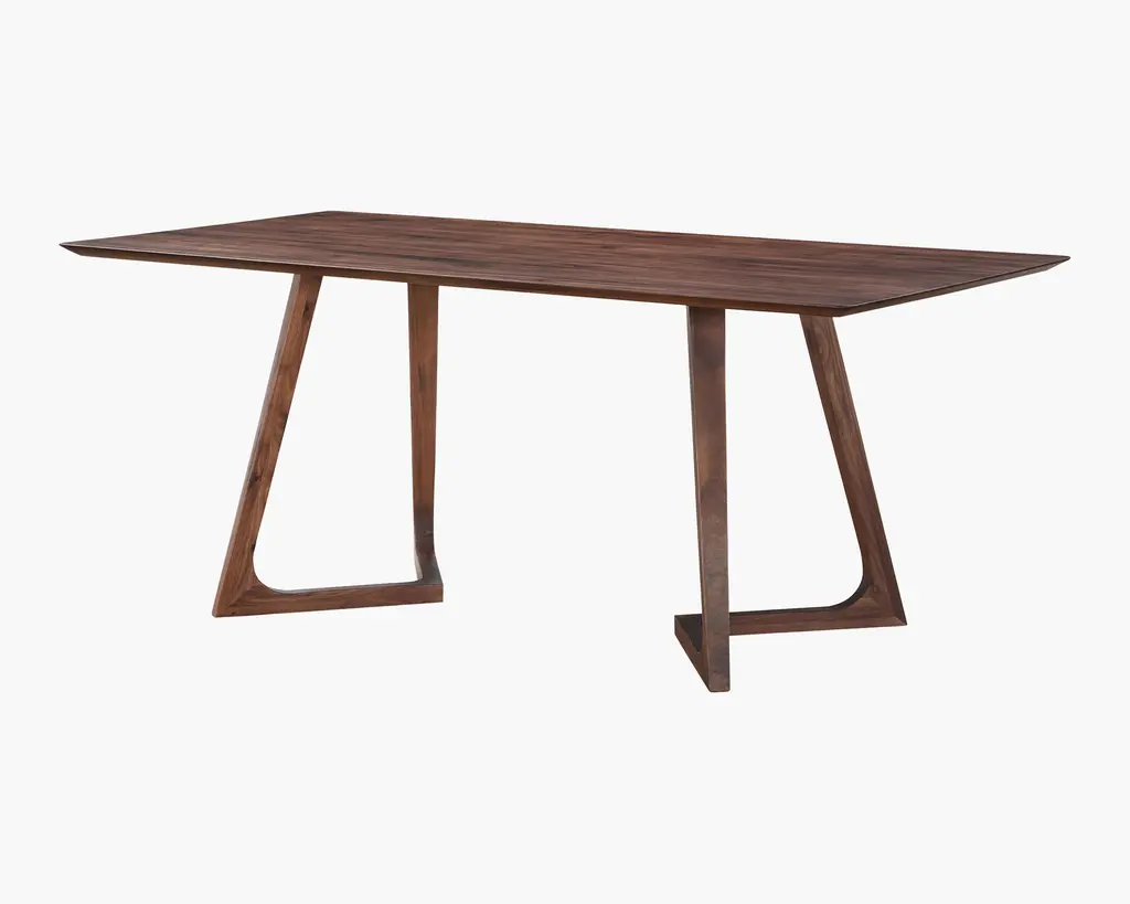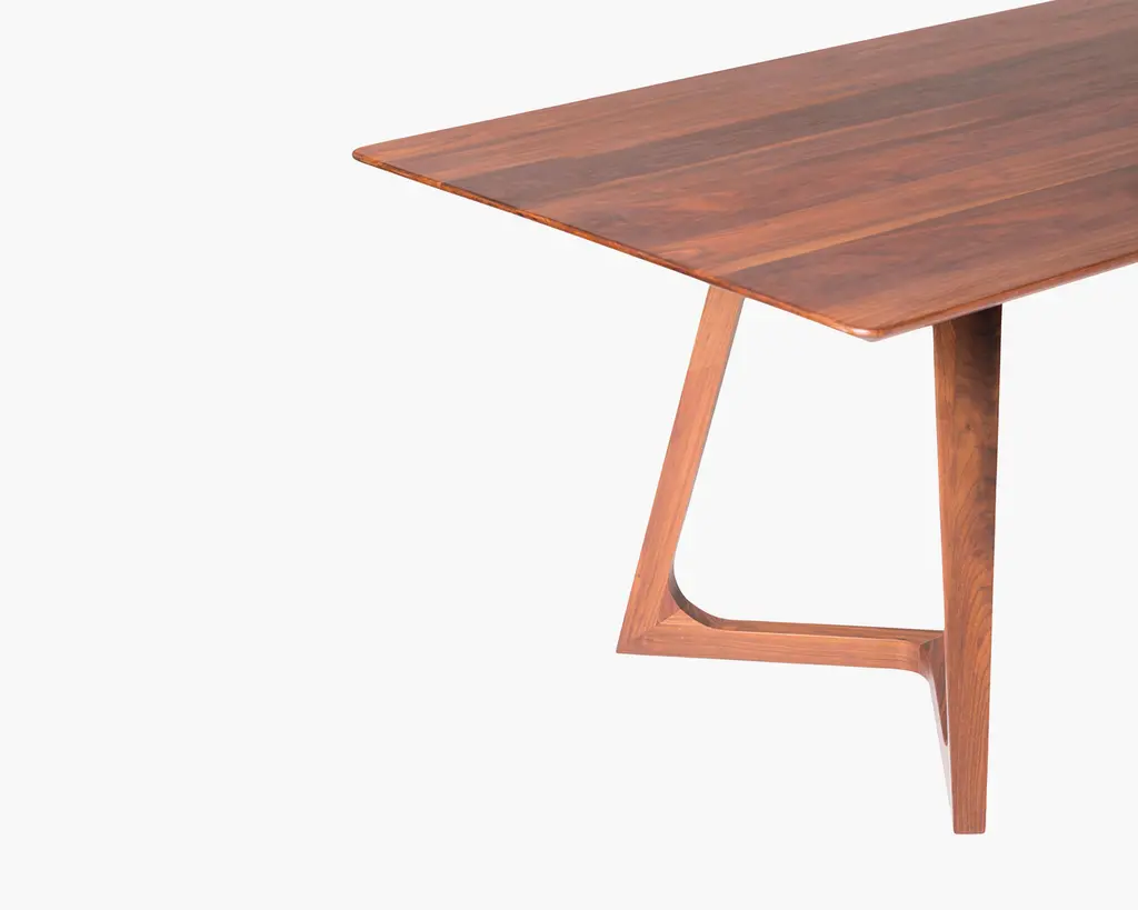 Made from solid American walnut, the Wilder Dining Table's mid-century modern design gives your dining room a subtle sophistication with its contemporary styled legs. 71"w. x 35.5"d. x 29.5"h. Shipping box: 76"w. x 6"d. x 40.5"h.; 111lbs Solid walnut top and legs Seats up to 8 Assembly required Receives white glove delivery