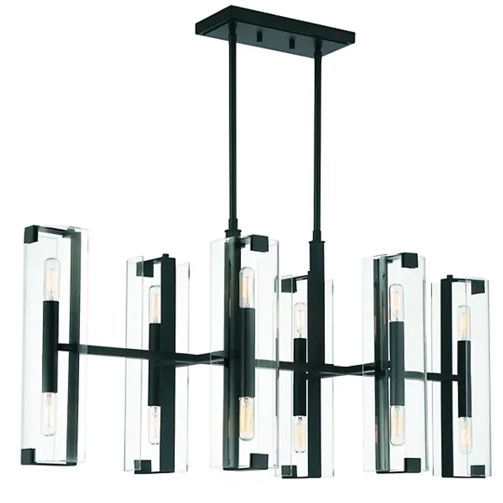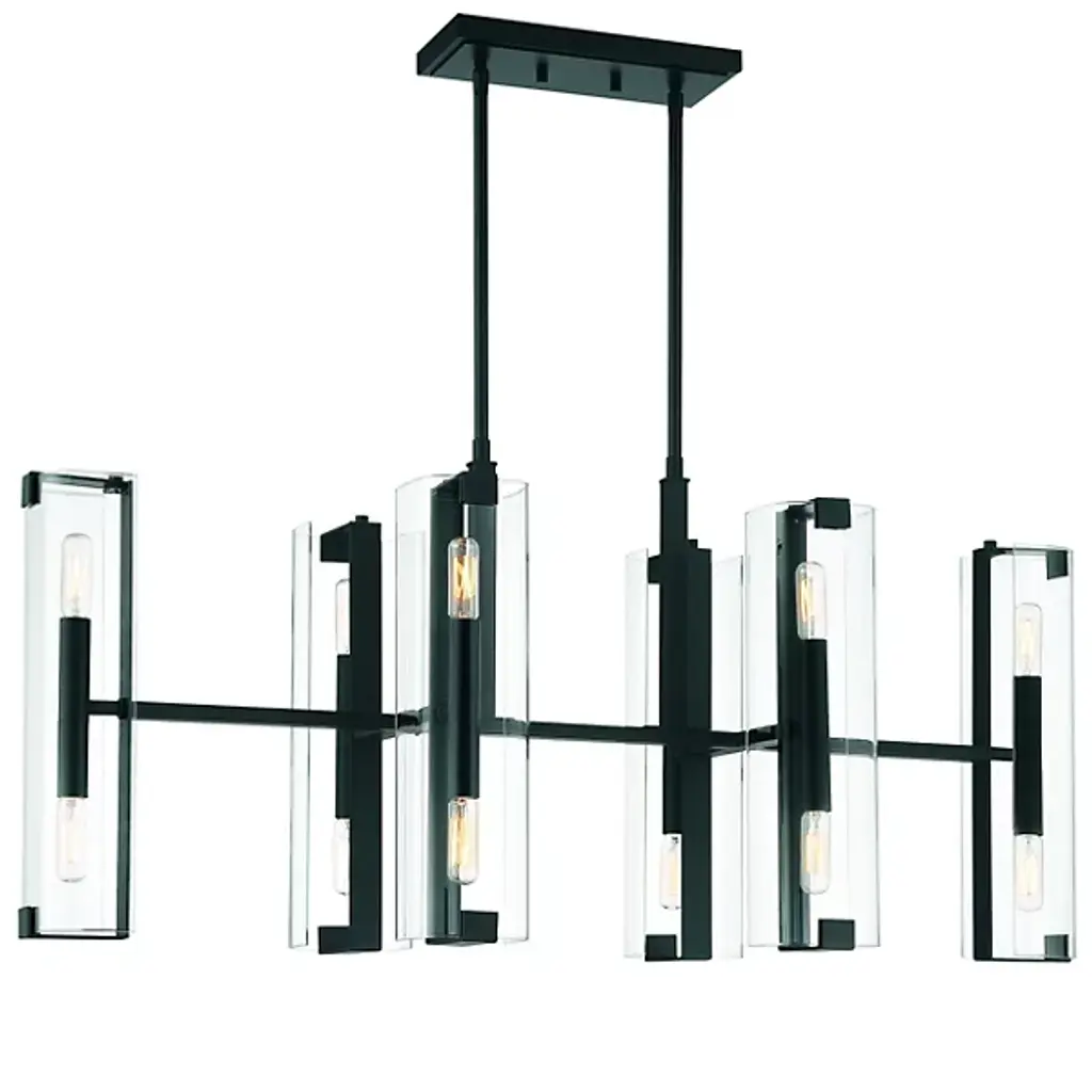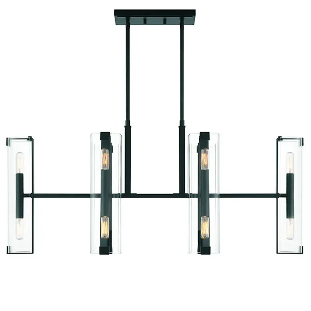Fashion-forward functionality. The Winfield Linear Suspension by Savoy House provides both ambient and task lighting in 1 very slick package. It features double-sided sockets inside cylindrical clear glass shades that will cast light up and down, offering ample illumination for meal prep, dinner parties or intimate family gatherings. Center this ceiling fixture above a kitchen island or rectangular dining table to enjoy brightness delivered with visual flair.