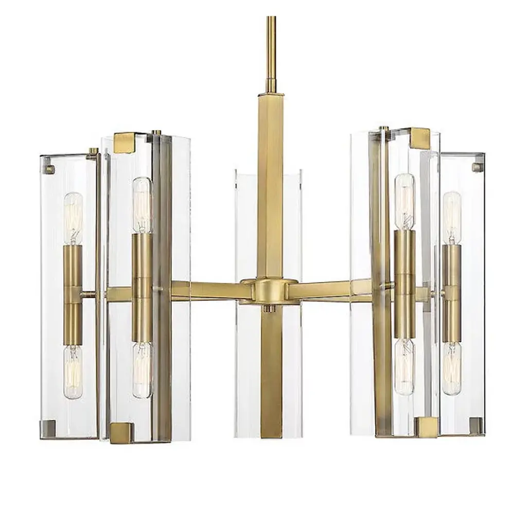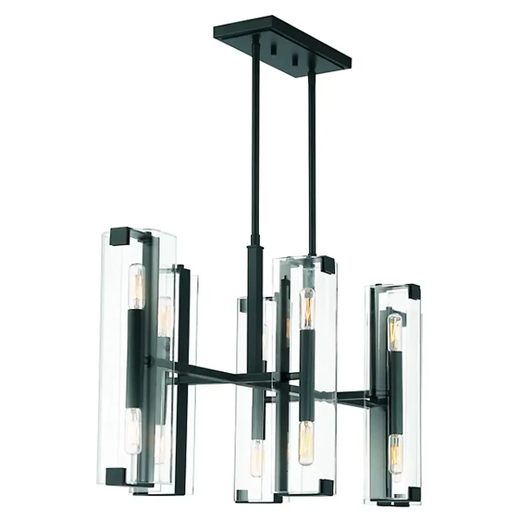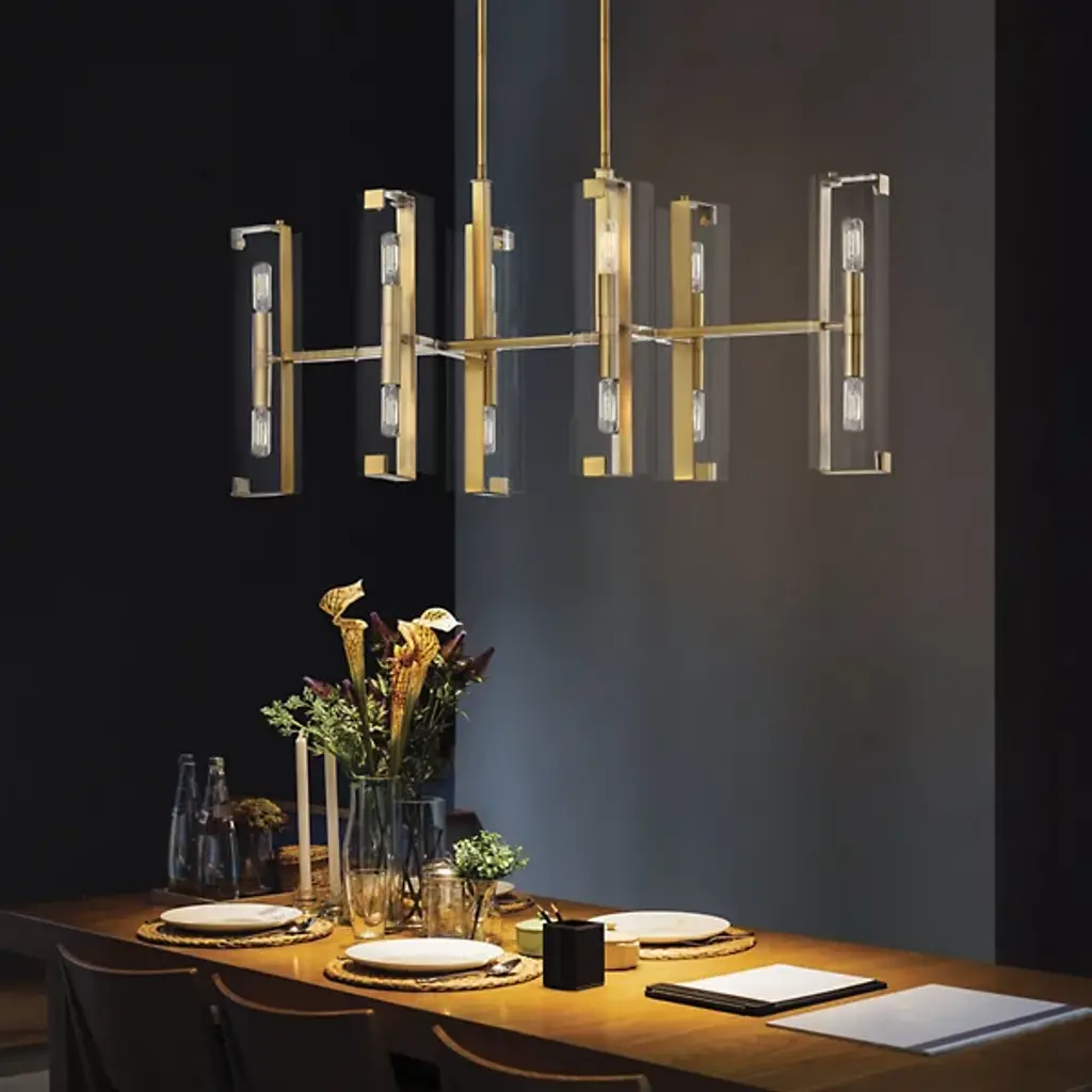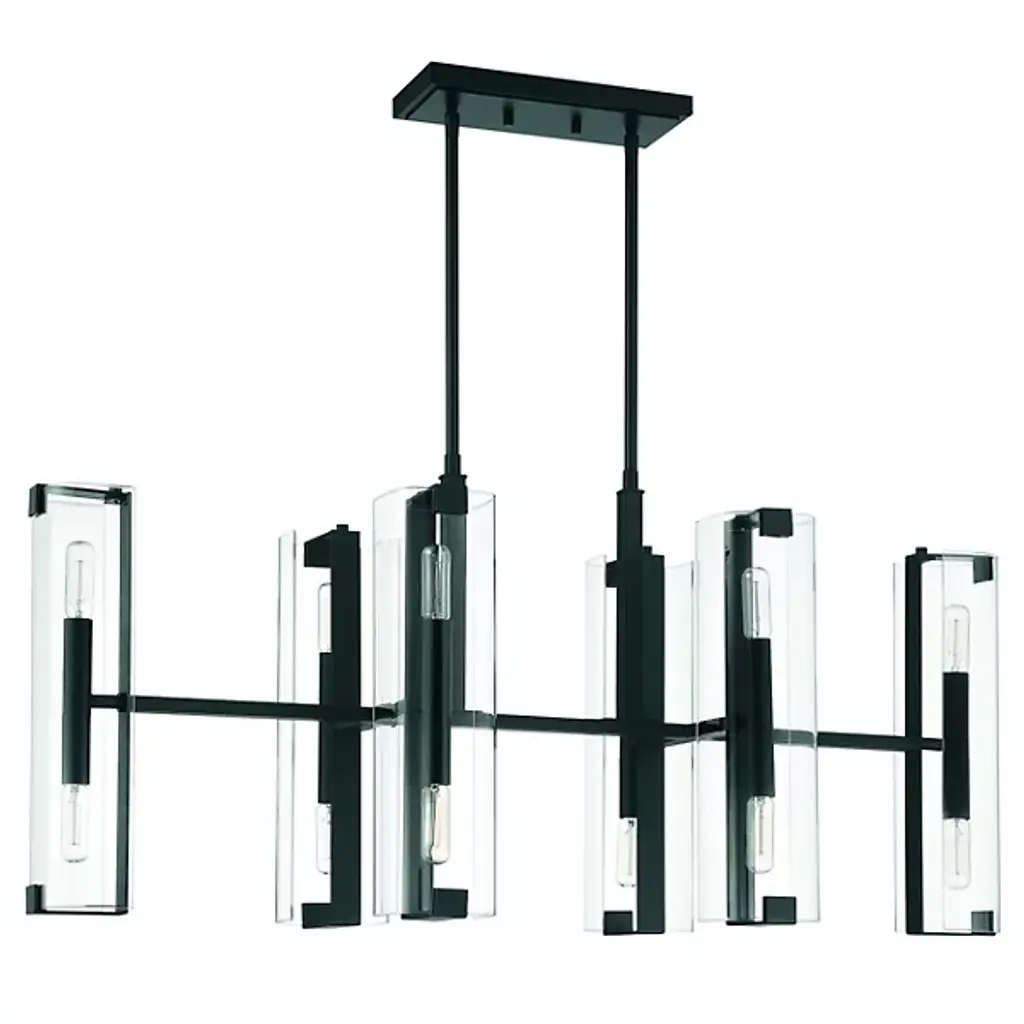 Fashion-forward functionality. The Winfield Linear Suspension by Savoy House provides both ambient and task lighting in 1 very slick package. It features double-sided sockets inside cylindrical clear glass shades that will cast light up and down, offering ample illumination for meal prep, dinner parties or intimate family gatherings. Center this ceiling fixture above a kitchen island or rectangular dining table to enjoy brightness delivered with visual flair.