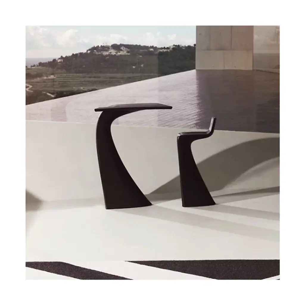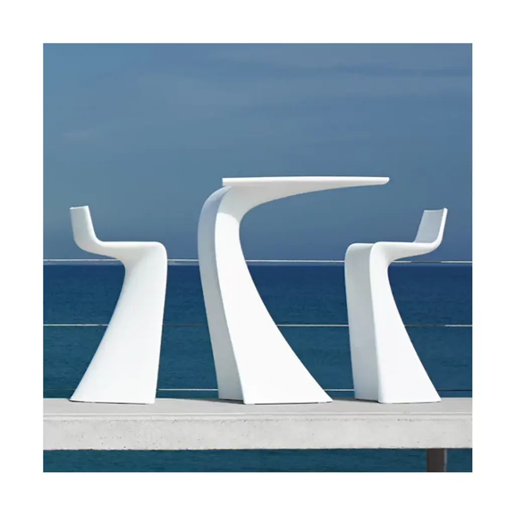 The Wing High Table features straight lines and calculating curves that artistically mimic the aerodynamics of flight. Slender enough for small spaces, this sculptural piece will enhance the ambiance of any modern dining area by providing a stylish and comfortable meal-time surface. Beyond aesthetics, the furniture is made of polyethylene resin, a hard-wearing and weatherproof material. What's more, the no-slip adjustable feet provide extra support and stability, creating peace of mind during wet conditions. So feel free to place the Wing Table in the garden, or practically anywhere under the sky. Add a splash of color with a selection of eye-catching shades in matte or glossy finish.