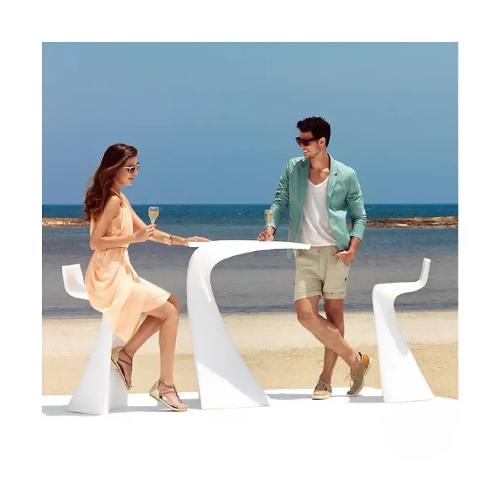 The Wing High Table features straight lines and calculating curves that artistically mimic the aerodynamics of flight. Slender enough for small spaces, this sculptural piece will enhance the ambiance of any modern dining area by providing a stylish and comfortable meal-time surface. Beyond aesthetics, the furniture is made of polyethylene resin, a hard-wearing and weatherproof material. What's more, the no-slip adjustable feet provide extra support and stability, creating peace of mind during wet conditions. So feel free to place the Wing Table in the garden, or practically anywhere under the sky. Add a splash of color with a selection of eye-catching shades in matte or glossy finish.