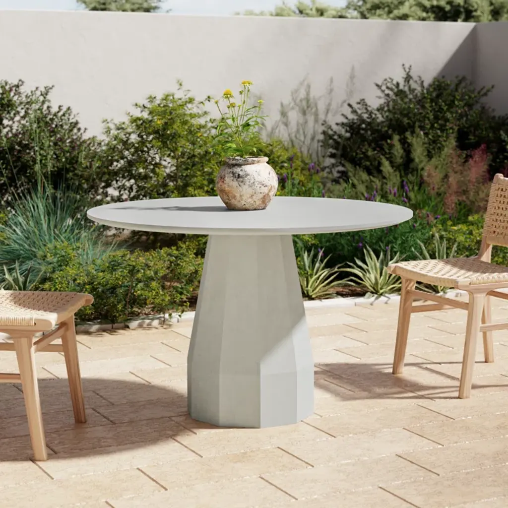 The new centerpiece for your patio paradise or dine-in dinner dates. With a uniquely textured surface, the indoor/outdoor tables' concrete construction and geometric base will bring elegant sculptural vibes to your patio area. As sturdy as it is versatile, this table is a shoo-in for gorgeous gatherings to come.