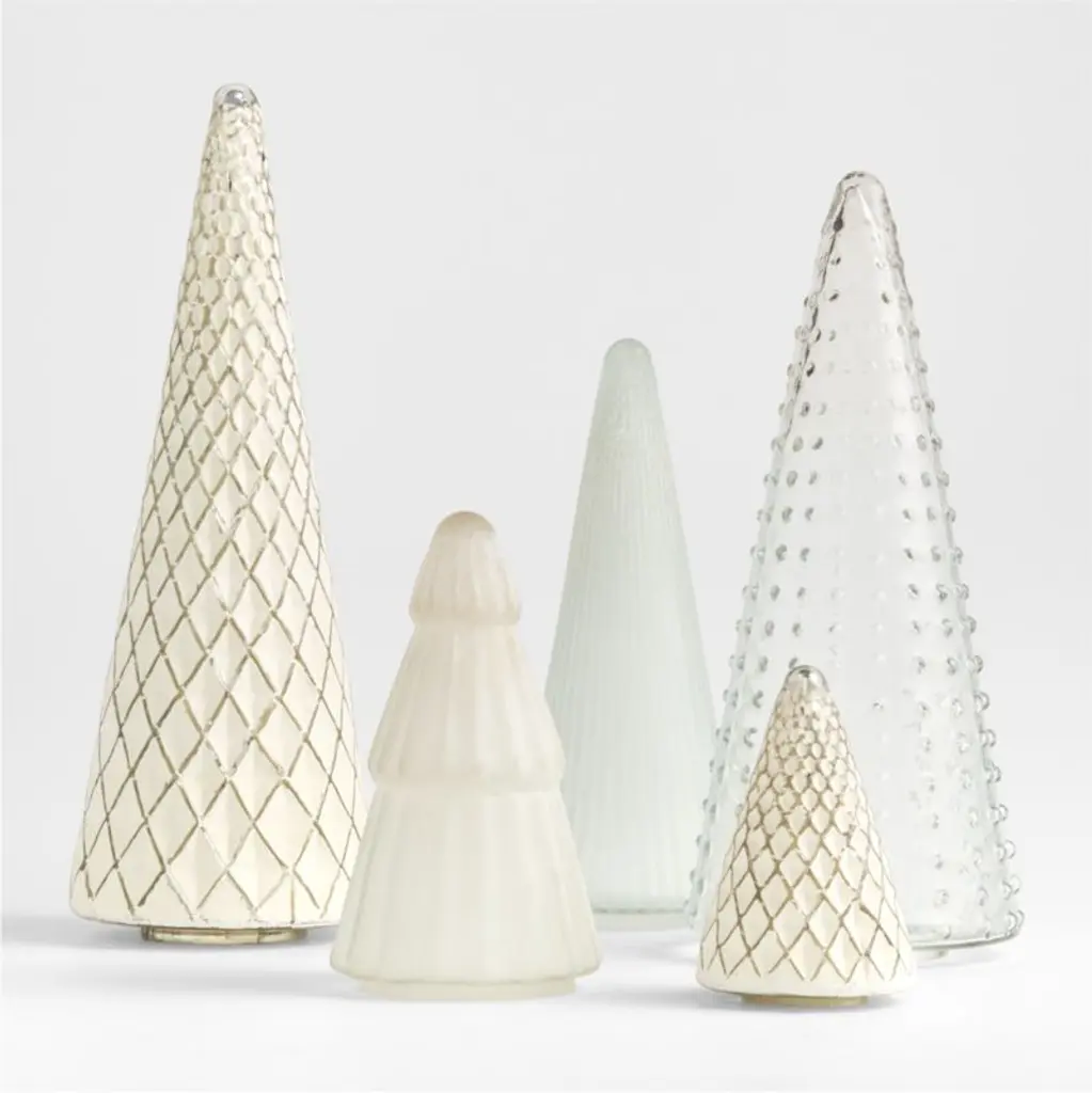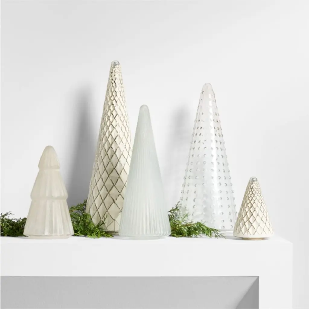 Create a winter wonderland on your mantel, buffet or dining room table with our glass tree collection. A frosted finish gives this tiered evergreen a snowy look we love, while slender fluting adds charming texture. Hand-finished by skilled craftspeople, the small tree glows softly in the light of candles and string lights.
