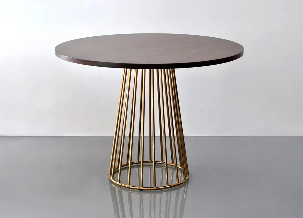 Listed price is for the wired cafe table with a polished chrome base and either walnut, white oak, or ebonized oak wood top. Prices exclude packing.Tapered lengths of metal meet with intention in a modern interpretation of the wiry idea initially conceived by Warren Platner. This compact cafe table with grand presence is suitable to be used in multiples or in smaller dining areas.