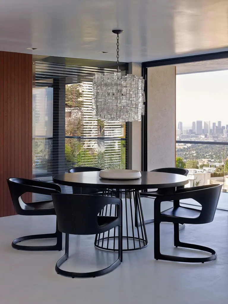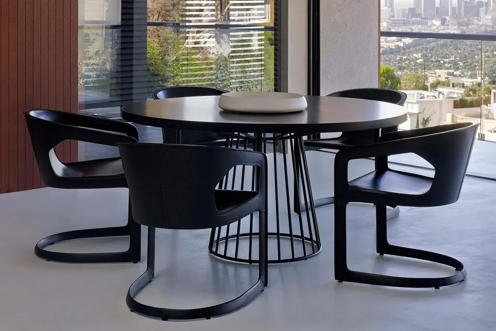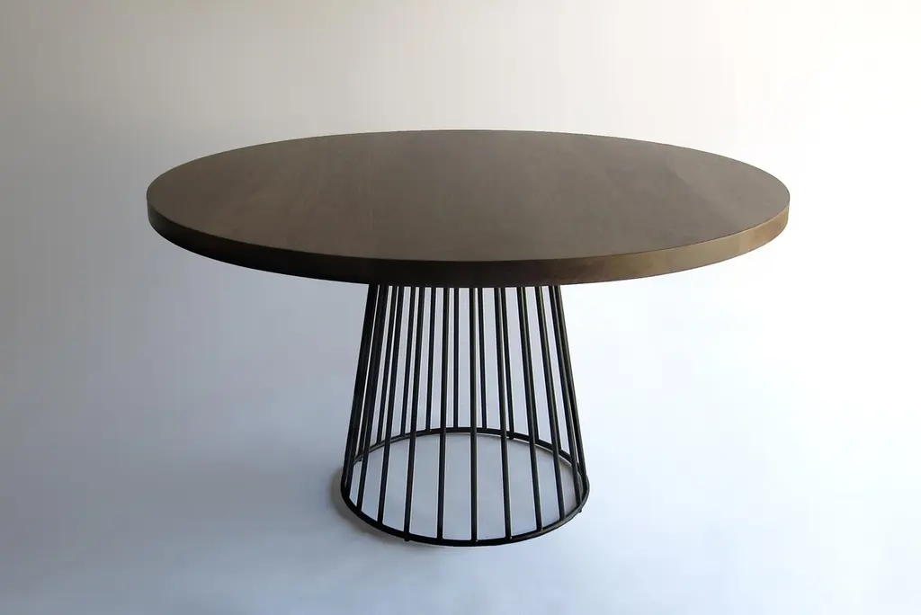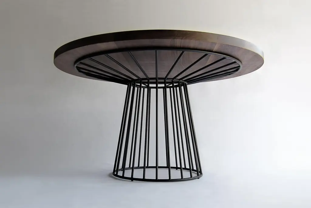 Wired Large Dining Table by Phase DesignDimensions: Ø 152.4 x H 73 cm. Materials: Powder-coated metal and walnut.Solid steel bar with marble or solid wooden tops. Steel bar available in gloss or flat white and black powder coat, polished chrome, burnt copper, or smoked brass finish. Powder coat finishes also available in custom colors. Marble top available in white carrara or negro marquina, with polished or honed finish. Wood top available in walnut, white oak, or ebonized oak. Prices may vary. Please contact us.Blending sloping angles and taut lengths of bent metal are a modern interpretation of the wiry idea initially conceived by Warren Platner. This dynamic dining table will be the conversation starter at your next dinner party.Autodidact award-winning designer Reza Feiz has always been drawn to the strength in simplicity. Lured to Southern California by its inventive, creative spirit, he quickly discovered his true calling among the vast community of creators and artisans whose skills and ingenuity expertly transform imagination into reality.Inspired by Los Angeles’ iconic landscape and the compelling beauty of the places and spaces he encountered, he envisioned furniture, lighting and tabletop accessories, fabricating them from contemporary materials with the help of a tightly knit coterie of craftspeople.The resulting restrained yet revolutionary pieces have garnered enthusiasm from an international audience.He’s been lauded as “An American designer who influences world design”, a “Style Pioneer” and “One of a group of select young designers who represent the leading edge of discovery in design.” Architectural Digest’s Mayer Rus noted that his “wide-ranging collections make a strong case for the enduring appeal of restrained modern design.” Surface Magazine raved that he “imbues his work with a 21st-century edge. His astute sense of restraint keeps the designs relevant in a constantly evolving industry, without needing to subscribe to trends.”“Reza Feiz imbues his work with a 21st-century edge. His astute sense of restraint keeps the designs relevant in a constantly evolving industry, without needing to subscribe to trends.”
