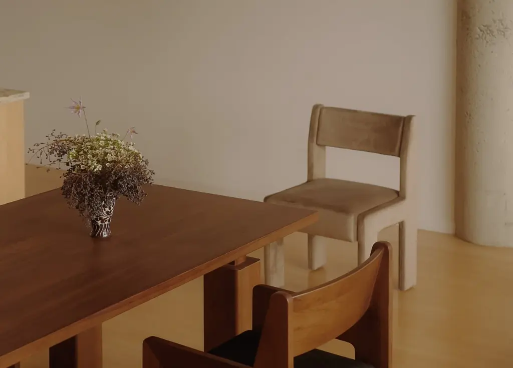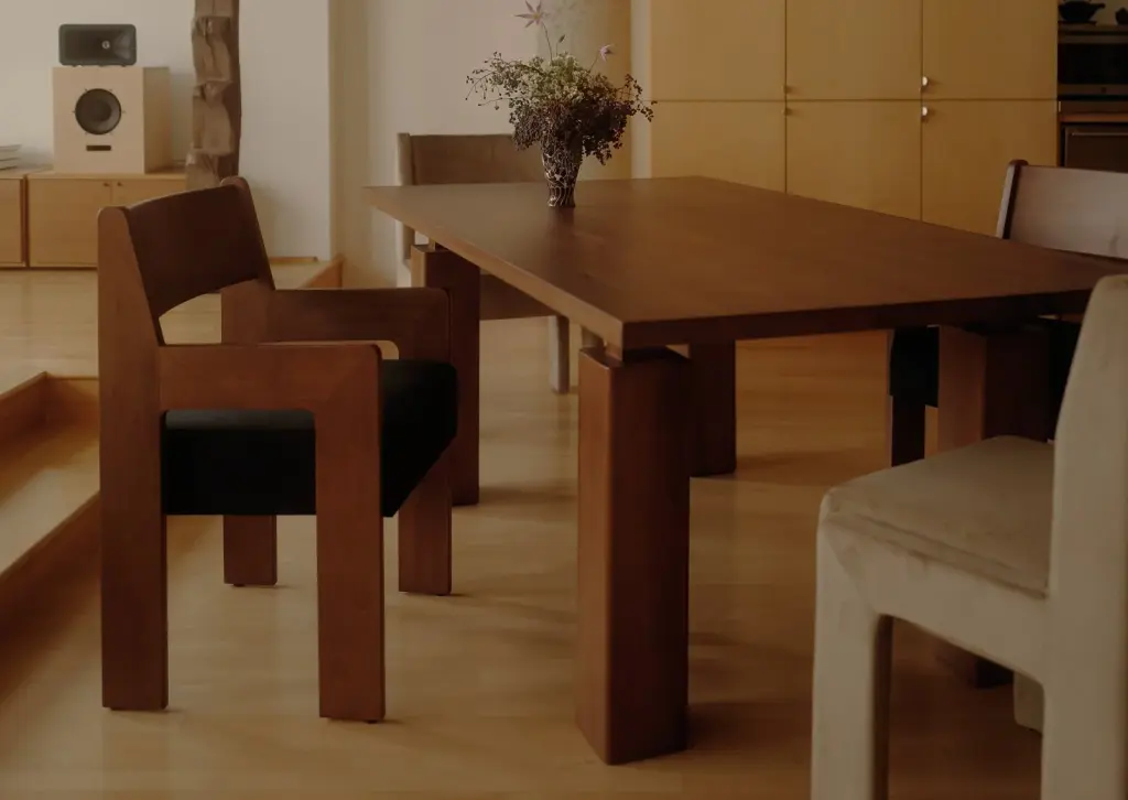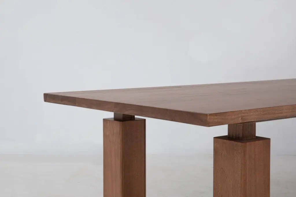 The Wolo Dining Table leans on contrast as a guiding concept. Columnar legs feature thick pillars attached with thin connective tissue while the simple geometry emphasizes the quality of the solid, sustainable makata wood and its beautiful grains, color, and luminescent sheen that changes with the light. The dining table is part of the Wolo series, which contrasts heavy columns with thin connections and components for a sculptural look.Dimensions: Ships to the continental US only.Unsure of which finish? Request free color swatches here.