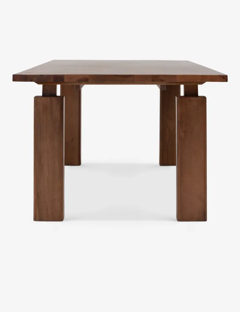 Furniture design studio Sun at Six seeks to help create open, natural spaces with their line of minimal furniture. The Wolo dining table is a statement in natural grain elegance with its sustainable Makata wood construction and thick columnar legs. The table's artful joinery offers a modern silhouette that plays with contrast, creating a dining room centerpiece as robust as it is sleek.