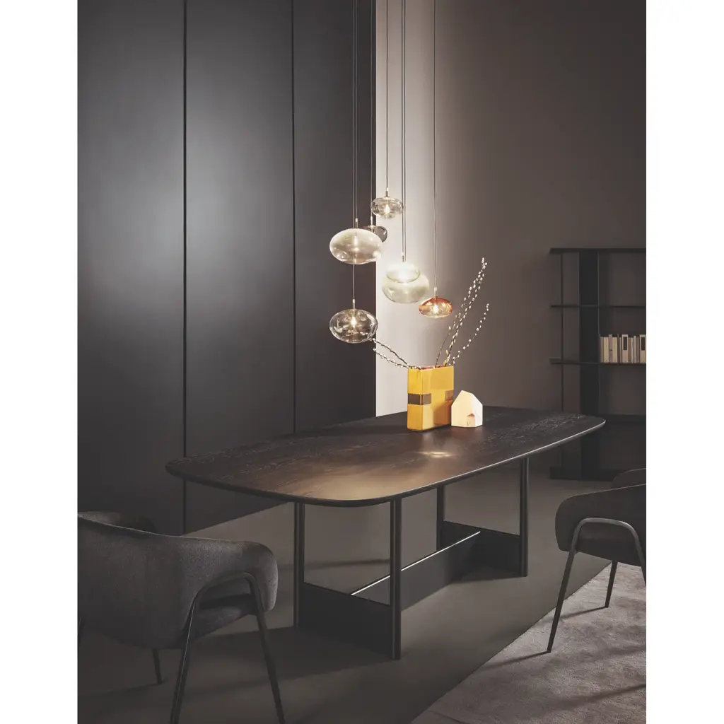 Designed by Alain Gilles, the Canvas Table stands out for its bold personality, sober lines and surprising proportions. The barrel-shaped top features generous curves and a minimal, linear design, which gives an overall sensation of continuity and fluidity. The top blends harmoniously with the base, just like a freshly painted work of art on steel easels. The architecture of the base, rigorous and at the same time unexpected, sees all the metal elements converge and connect to form a solid but never bulky structure. The result is a table with distinctive harmony that transmits a sensation of lightness, through a design that aims to challenge conventions and transform the perception of the visual weight of this piece of furniture.