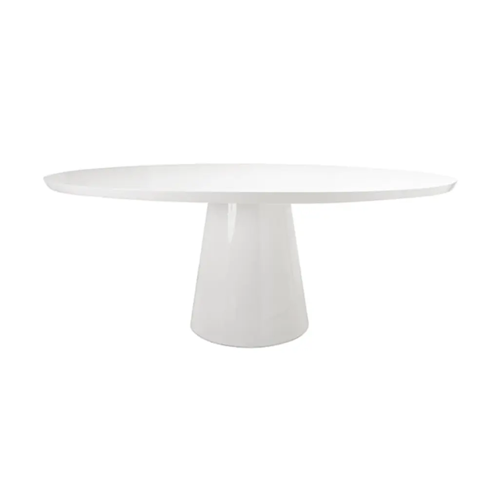 The Worlds Away Jefferson oval dining table will be the center of conversation at your next social gathering! Featuring a stunningly chic base and tapered oval top, the Jefferson easily seats six.. Available in: White lacquerCerused oakBlack cerused oakDimensions: 86" W X 30" H X 48" D Free shipping within the U.S. and Canada.
