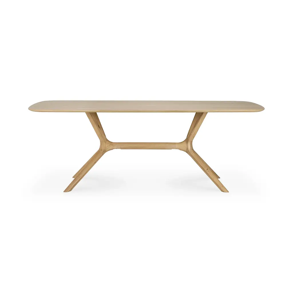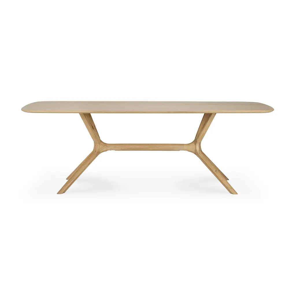 Complex simplicity Casual and comfortable, yet sturdy and intricate, the X Dining Table from Ethnicraft can effortlessly find a home in a multitude of interior design schemes while cementing itself as an eye-catching design piece. A true work of art thanks to its use of advanced wood-working techniques, this dining table is crafted from solid oak wood and features a hardwax oil finish, bringing the clean-lined, sophisticated beauty of Scandinavian craftsmanship to your space. Deceptively simple, this dining table showcases soft lines and rounded corners that add a playful touch to a traditional design. Pair with matching solid wood seating like the Osso Dining Stool or Bok Dining Chair for a cohesive look or go for a contrasting option crafted for sleek black metal chair for an unexpected design option. Why We Love It: Features