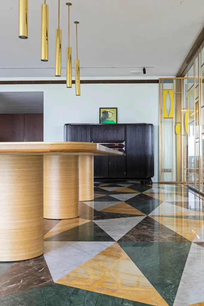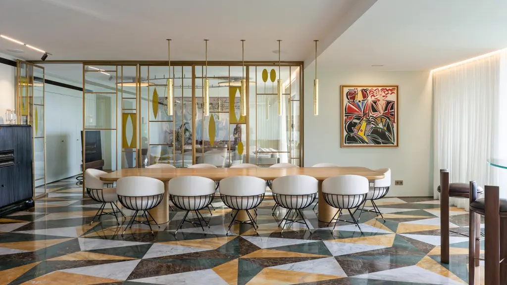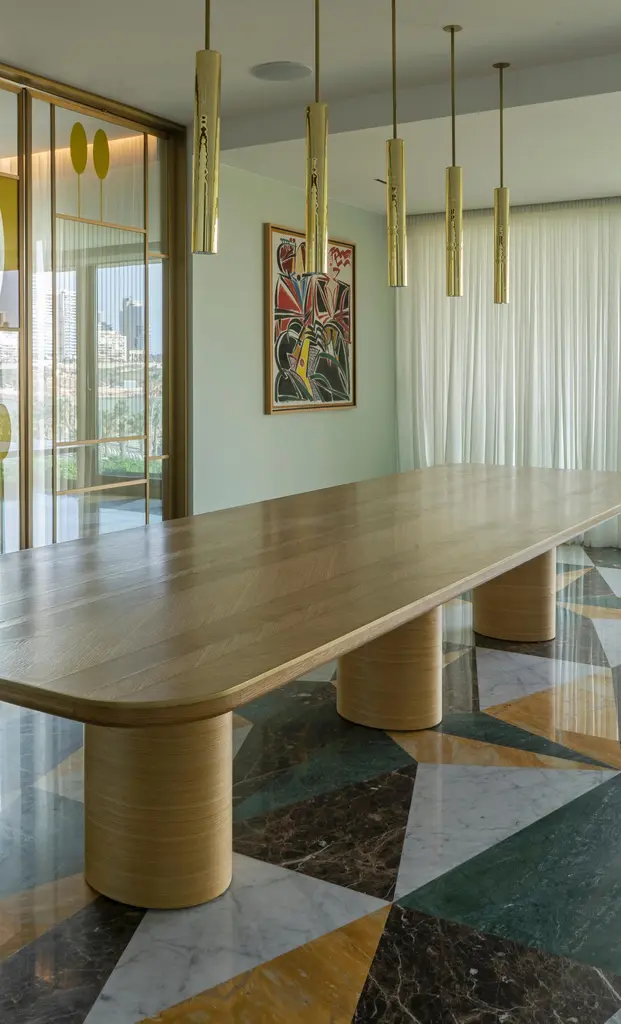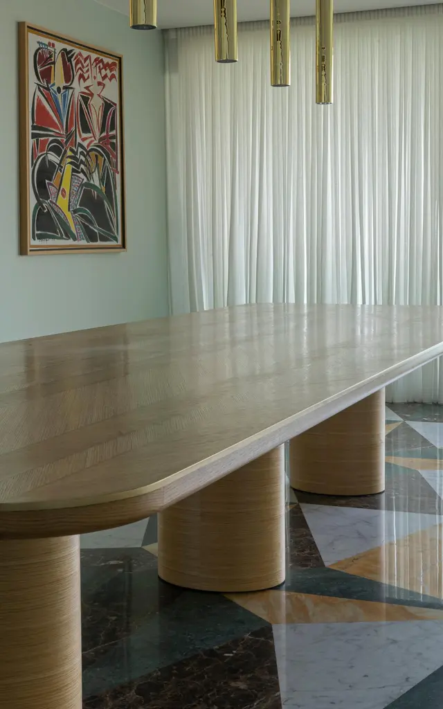 "X" hand made dining table, made of French Oak veneered top and oxidized brass inlays, and French Oak legs; is part of X COLLECTION, inspired by the mathematical symbol "X." and signature "V" symbol that represents the designer's personal identity, design consistency, branding, artistic expression, and collector's appeal. The symbol serves as a distinct mark, showcasing the designer's unique style and vision. This symbol carries various connotations and interpretations, and when translated into furniture design, it results in a visually striking and conceptually intriguing collection. The "X" symbol is commonly associated with the idea of crossing or intersecting elements. It represents a meeting point, a connection, the intersection of materials and crossing of lines. The "X" symbol becomes a metaphorical expression of unity, cohesion, and harmonious integration within the collection.