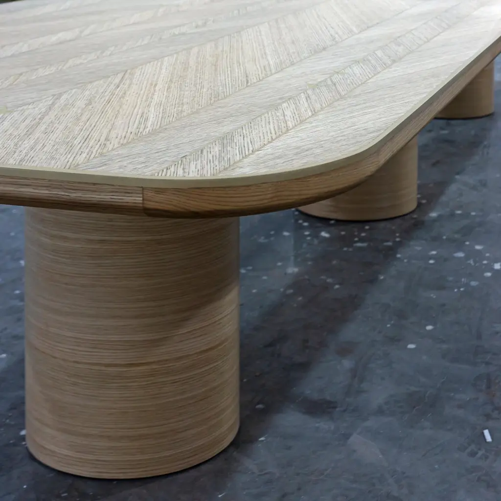 X Dining Table Made Of Natural French Oak And Brass Inlays