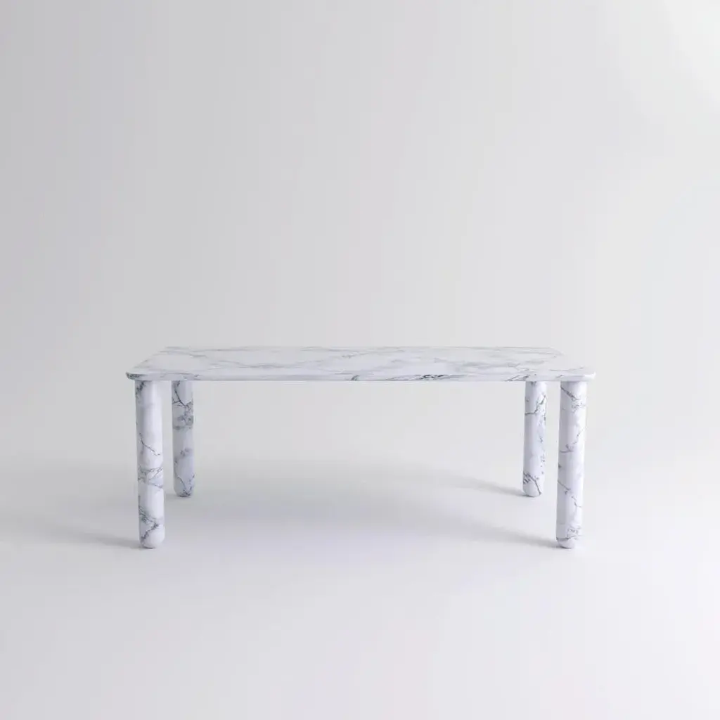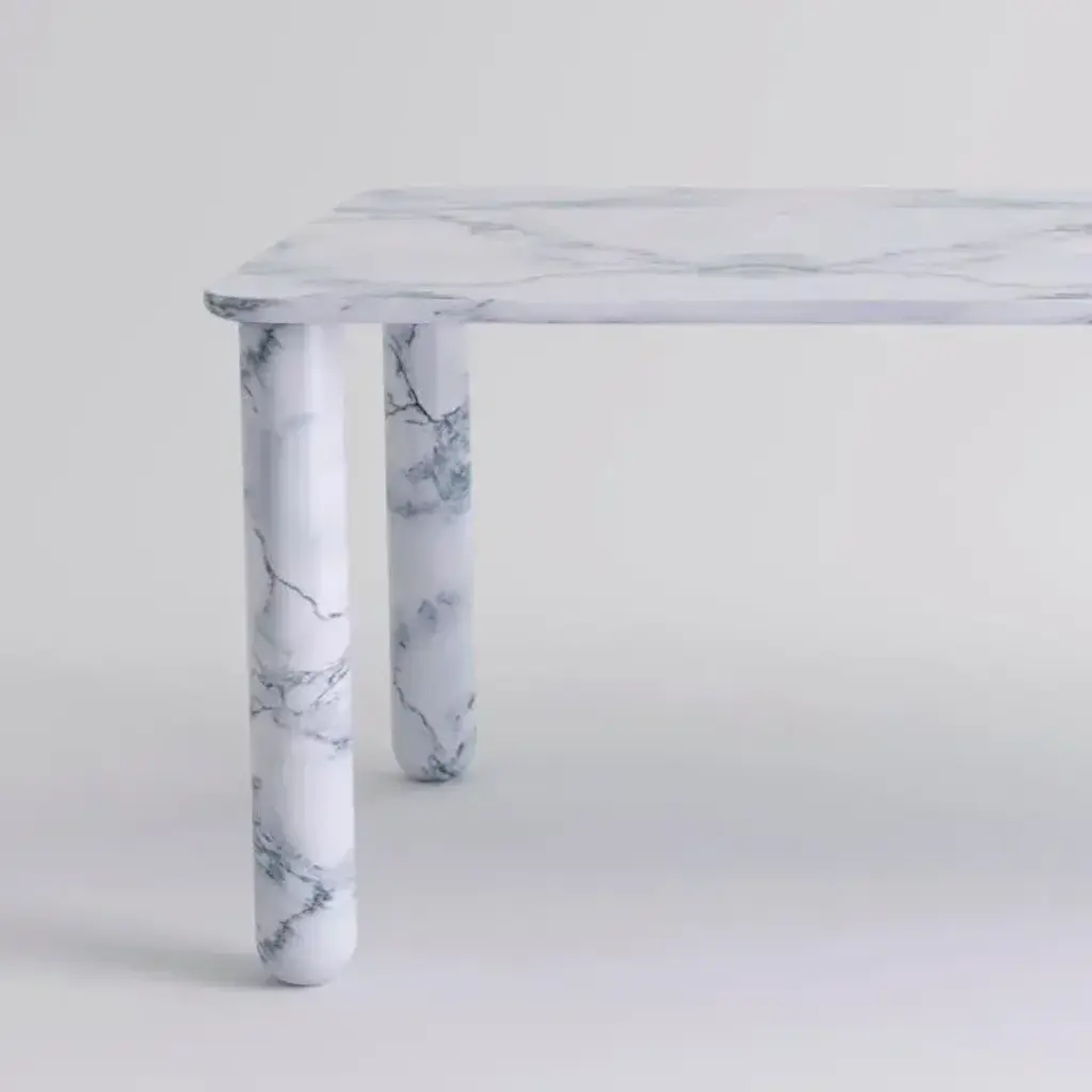 X large white marble "sunday" dining table, jean-baptiste souletie dimensions: 200 w x 100 d x 74.5 h cm. Materials: white pele de tigre marble. Different finishes and sizes are available. Sunday is a family of dinner tables, coffee tables and consoles with a simple and sculptural design. The mix of heavy marble legs and a thin solid wood top creates an interesting contrast while the rounded edges and generous proportions provide a comforting feeling. Sunday is all about the materials: 3 marbles and 2 woods are available in the collection. Sunday comes in a wide variety of dimensions and 2 different marble legs heights to perfectly fit your interior whether you need a small coffee table, a large one, a console, or even a dinner table that will seat 10 guests on a friendly sunday lunch. Jean-baptiste souletie is the co-founder of the furniture editor la chance with louise breguet. He studied in india, worked for a merchant bank in london (where he designed their new offices), before working for an investment fund (where he redevised the graphic chart), and in the strategic department of a luxury goods company in paris. He returned to his first loves, architecture and furniture, when he founded la chance in 2012.