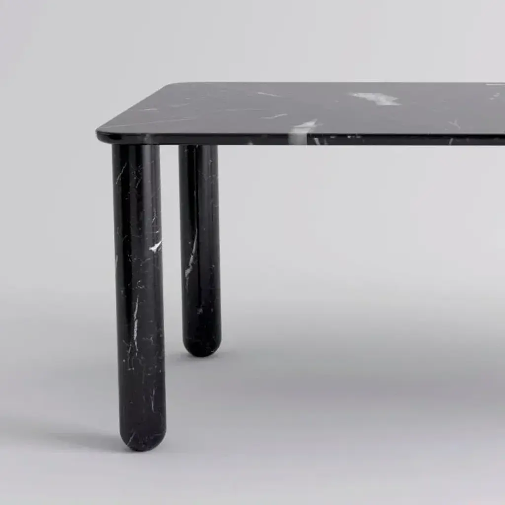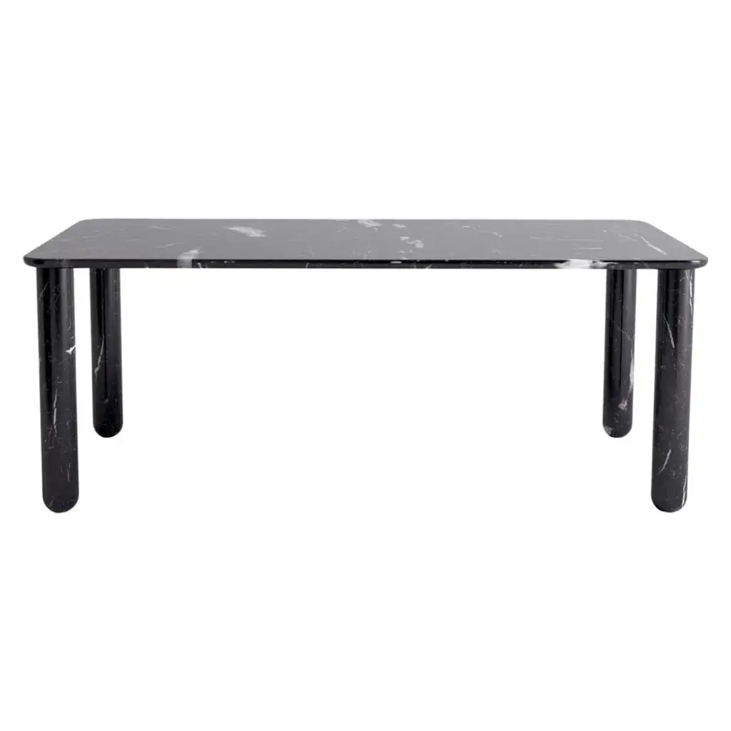 XLarge black marble "Sunday" dining table, Jean-Baptiste Souletie Dimensions: 200 W x 100 D x 74.5 H cm Materials: Black Marquina marble. Different finishes and sizes are available. Sunday is a family of dinner tables, coffee tables and consoles with a simple and sculptural design. The mix of heavy marble legs and a thin solid wood top creates an interesting contrast while the rounded edges and generous proportions provide a comforting feeling. Sunday is all about the materials: 3 marbles and 2 woods are available in the collection. Sunday comes in a wide variety of dimensions and 2 different marble legs heights to perfectly fit your interior whether you need a small coffee table, a large one, a console, or even a dinner table that will seat 10 guests on a friendly Sunday lunch.