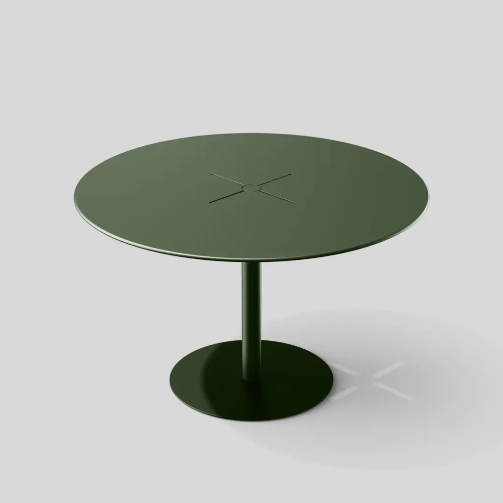 Made of steel and cast aluminum with a durable powder-coated finish, The XY Dining Table is minimal, airy and functional. The 48” round table is the ideal size for a group dining or game night. Table base also acts secure all-weather umbrella base. Coordinating XY Dining Chairs also available.