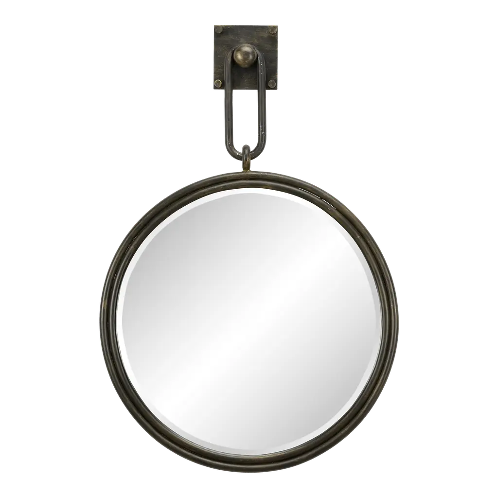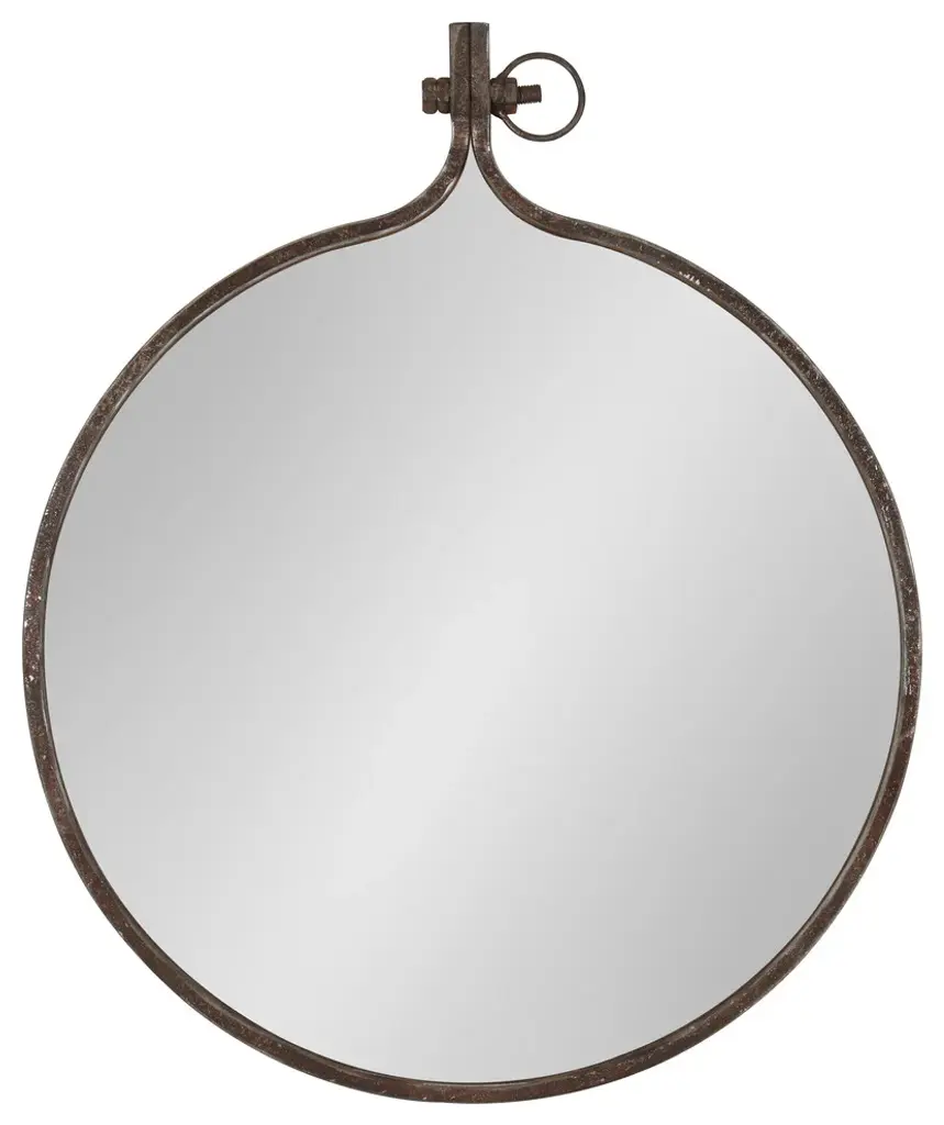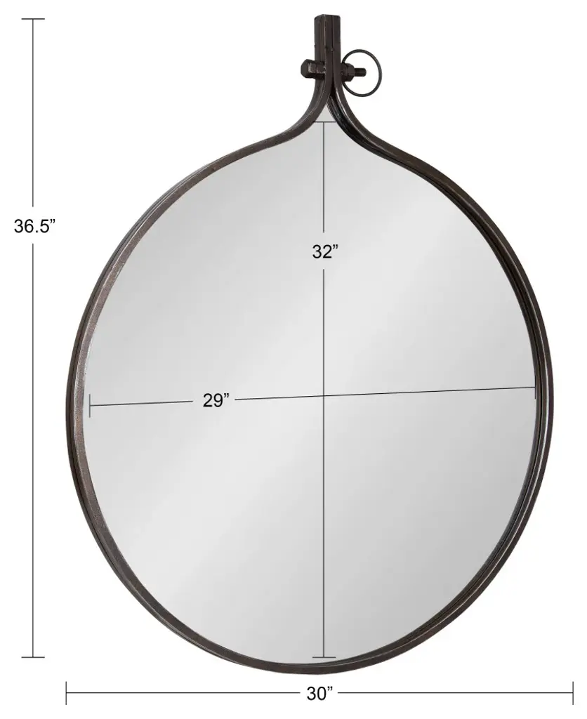 Embrace the industrial refinement of farmhouse decor by incorporating the beautiful Yitro mirror into your space. Inspired by vintage antiquity, the Yitro features a rustic iron frame in a round shape, with an ornamental, industrial clasp crown. The robust iron frame is perfect for capturing that timeless style and creating a bold focal point for the home. Adding a mirror to any space of your home maximizes the overall vibrancy, highlighting your light sources while making the room feel more dimensional. The Yitro is 30 inches wide by 1 inch deep by 36.5 inches tall, commanding attention with its large size. This mirror is fantastic for showcasing your farmhouse style in the living room, entryway, dining room, or bedroom decor. You could even use the large size as a rustic bathroom vanity mirror. The Yitro wall mirror is fantastic for making a statement on your mantle, over a console table, or above a neutral-tone couch. Hang this lovely accent mirror in only a matter of minutes with the sturdy and resilient keyhole hangers attached to the back of the frame. • RUSTIC LOOK: Indulge in beautiful farmhouse decor by incorporating this rustic-style accent, which features a round shape with an industrial, ornamental iron crown• QUALITY MATERIAL: This beautiful mirror features an iron frame with a robust, vintage finish that gives it that beautiful, timeless look of classic antiquity• LARGE SIZE: The Yitro is 30 inches wide by 1 inch deep by 36.5 inches tall, making it a commanding focal point for any room of the home• VERSATILE: Use this mirror as the crown jewel of your living room mantle, a rustic bathroom mirror, or a delightful feature in the entryway to add some vibrancy• EASY TO HANG: Robust keyhole hangers are attached to the back of the frame to ensure this metal mirror hangs securely on your wall