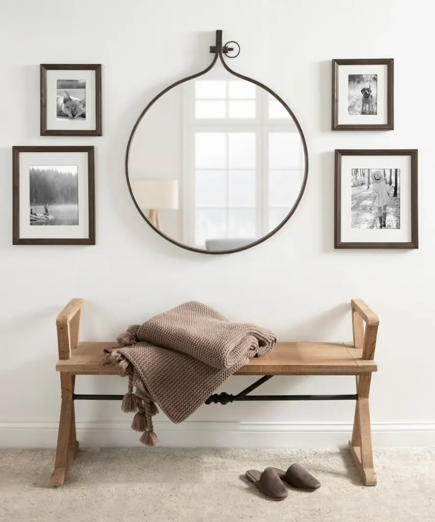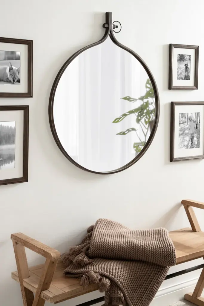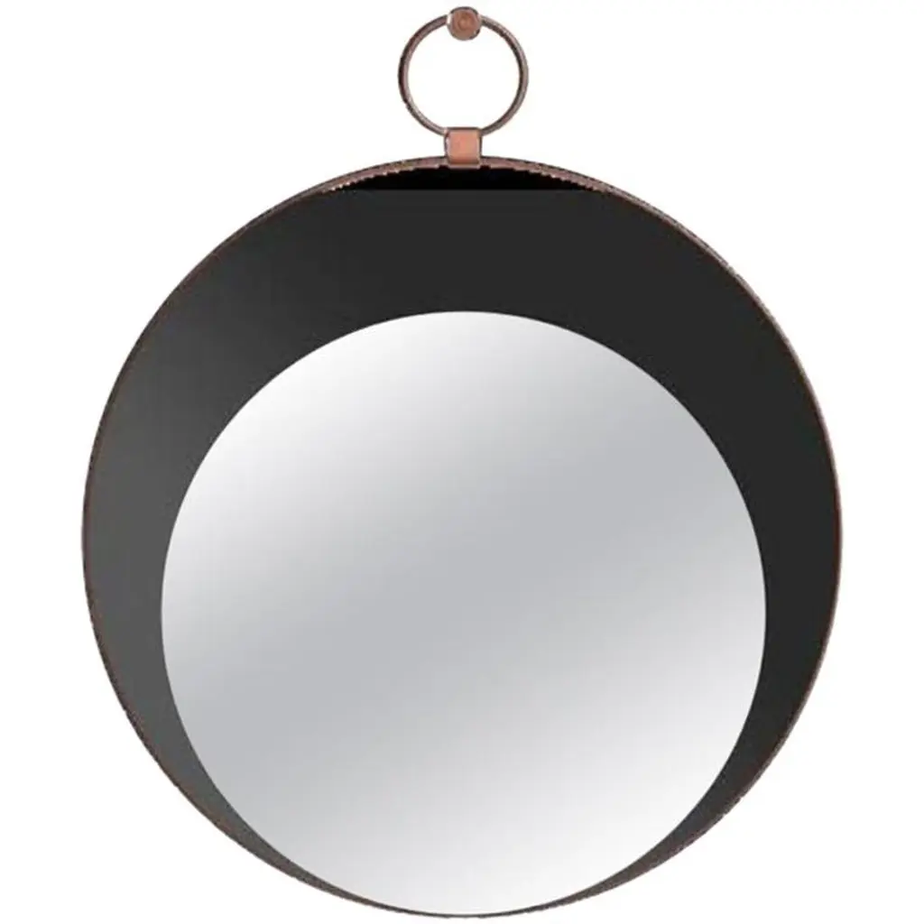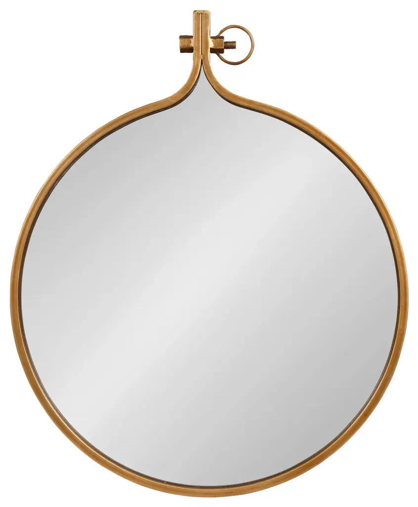 Embrace the industrial refinement of farmhouse decor by incorporating the beautiful Yitro mirror into your space. Inspired by vintage antiquity, the Yitro features a rustic iron frame in a round shape, with an ornamental, industrial clasp crown. The robust iron frame is perfect for capturing that timeless style and creating a bold focal point for the home. Adding a mirror to any space of your home maximizes the overall vibrancy, highlighting your light sources while making the room feel more dimensional. The Yitro is 30 inches wide by 1 inch deep by 36.5 inches tall, commanding attention with its large size. This mirror is fantastic for showcasing your farmhouse style in the living room, entryway, dining room, or bedroom decor. You could even use the large size as a rustic bathroom vanity mirror. The Yitro wall mirror is fantastic for making a statement on your mantle, over a console table, or above a neutral-tone couch. Hang this lovely accent mirror in only a matter of minutes with the sturdy and resilient keyhole hangers attached to the back of the frame. • RUSTIC LOOK: Indulge in beautiful farmhouse decor by incorporating this rustic-style accent, which features a round shape with an industrial, ornamental iron crown• QUALITY MATERIAL: This beautiful mirror features an iron frame with a robust, vintage finish that gives it that beautiful, timeless look of classic antiquity• LARGE SIZE: The Yitro is 30 inches wide by 1 inch deep by 36.5 inches tall, making it a commanding focal point for any room of the home• VERSATILE: Use this mirror as the crown jewel of your living room mantle, a rustic bathroom mirror, or a delightful feature in the entryway to add some vibrancy• EASY TO HANG: Robust keyhole hangers are attached to the back of the frame to ensure this metal mirror hangs securely on your wall