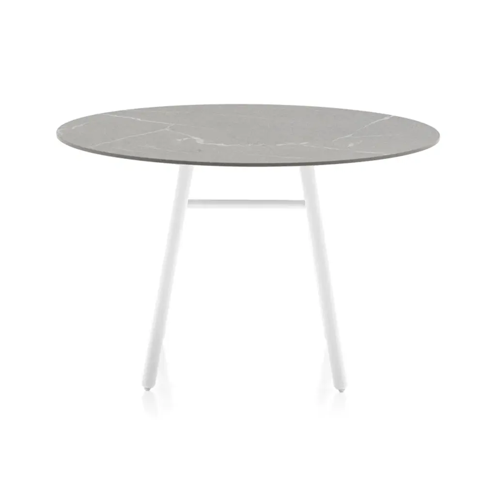 Gather 'round! A modern dining experience awaits with this round outdoor table. Featuring a sleek metal frame and a ceramic top, this table comfortably seats 4. Keep it looking fresh with easy maintenance tips to ensure durability for many gatherings under the sun. This table seats a crowd, so gather some friends.