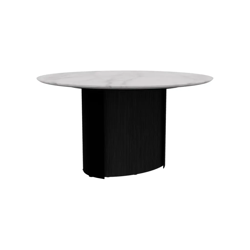 Elevate your dining experience with the Yoroi Oval Dining Table from Calligaris. Inspired by the armor of samurai warriors, its striking base boasts vertical grooves and wooden accents for a powerful yet refined presence. The round top's sleek simplicity perfectly complements the table's historical and modern elements, making it a stunning centerpiece for any dining area. Highlights