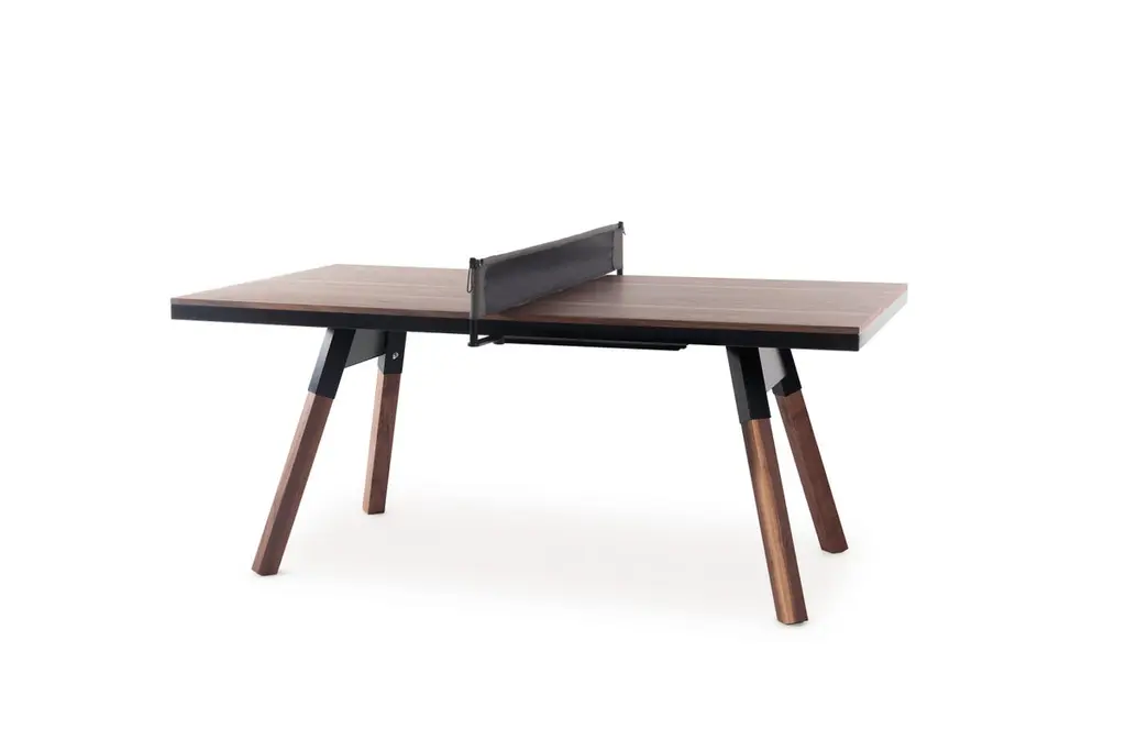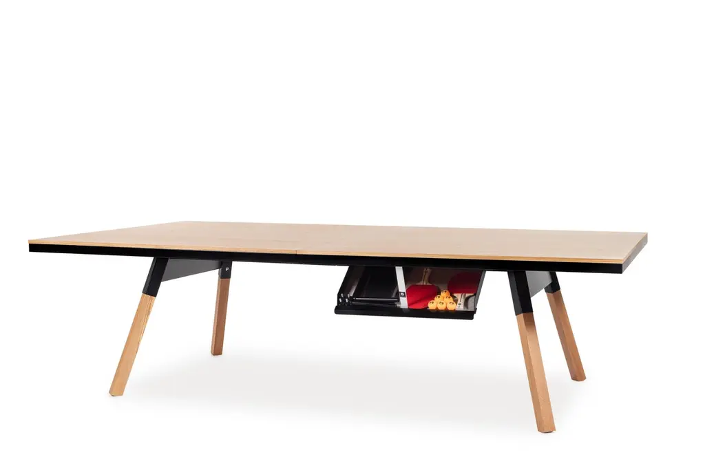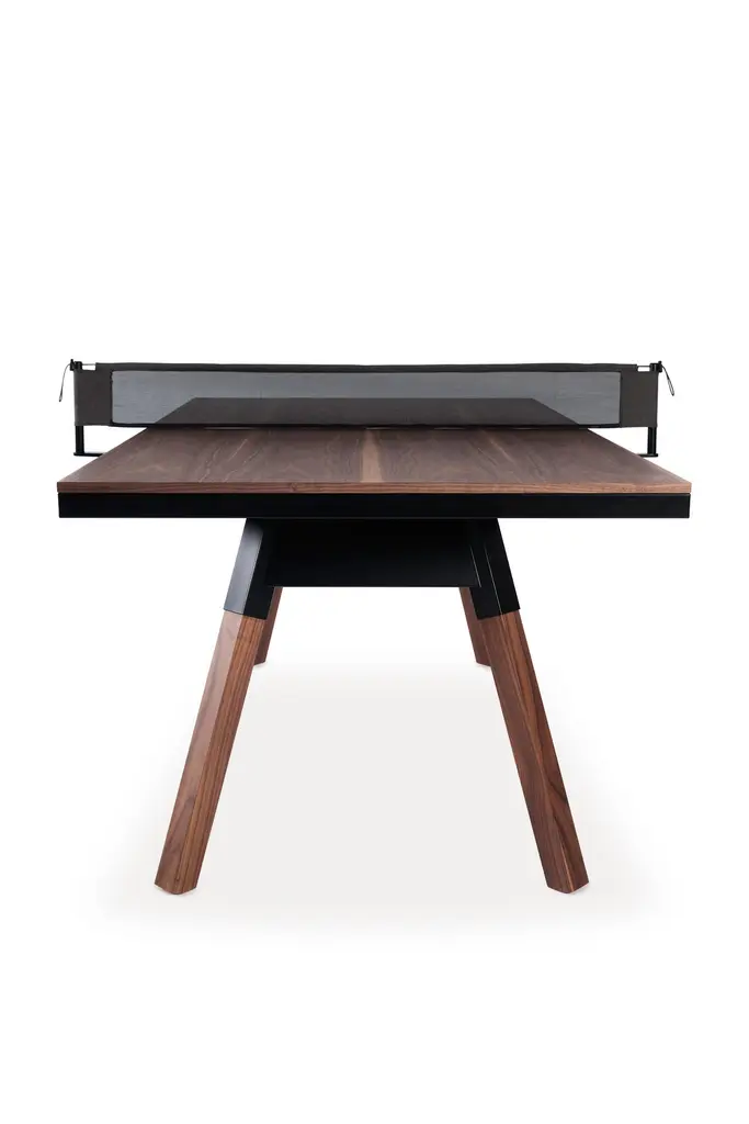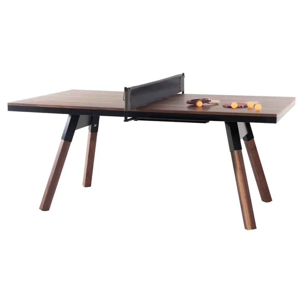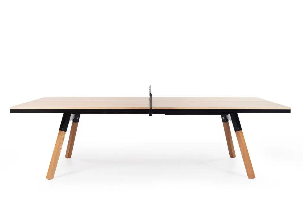 You and Me Indoor Ping Pong Table by Antoni Pallejà Office.You and Me is a ping pong table. It is slightly smaller measures than the tournament ones, with a surface and a design that provide total playability. And, it is also a dining table, an office desk, a conference table.MaterialsStructure: Steel with cataphoretic coating process and micro textured powder coated polyester paint.Top: Walnut or oak wood.Legs: Walnut or oak wood. Net: Coated polyester fabric.IncludesNetPaddles set (2 units) Balls set (6 units.For Residential Offices HospitalityIntense useCustomization optionsIt comes disassembledWood is a natural resource, wood tones may vary from the image.Designed & Manufactured in SpainEstimated Delivery time: 9-11 Weeks