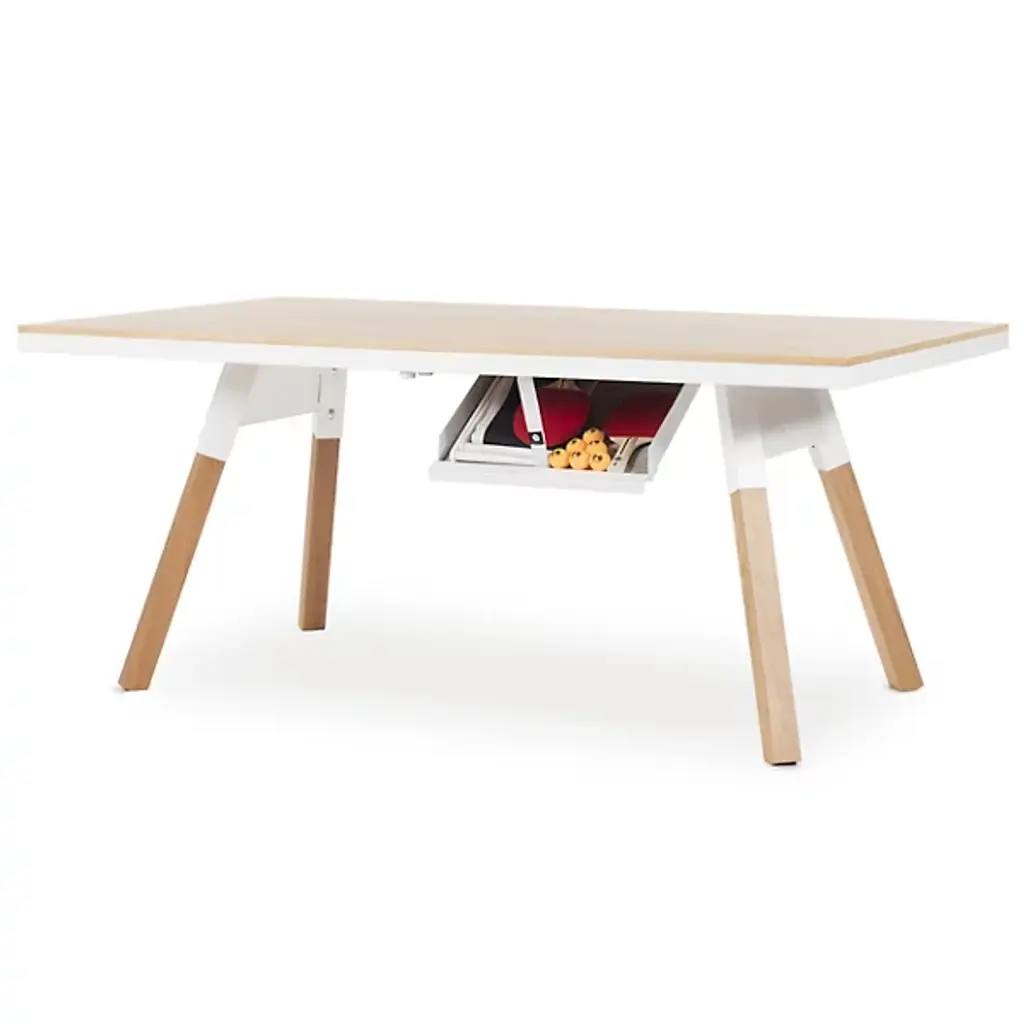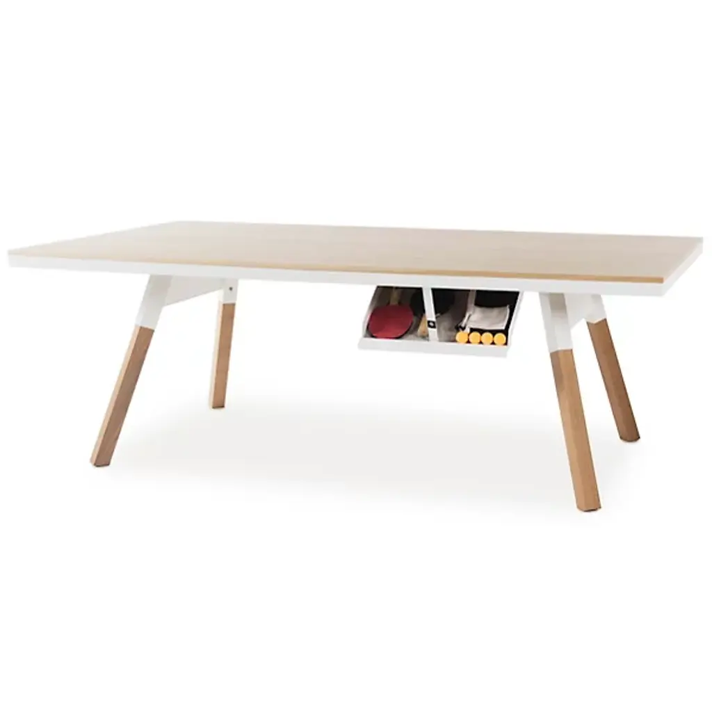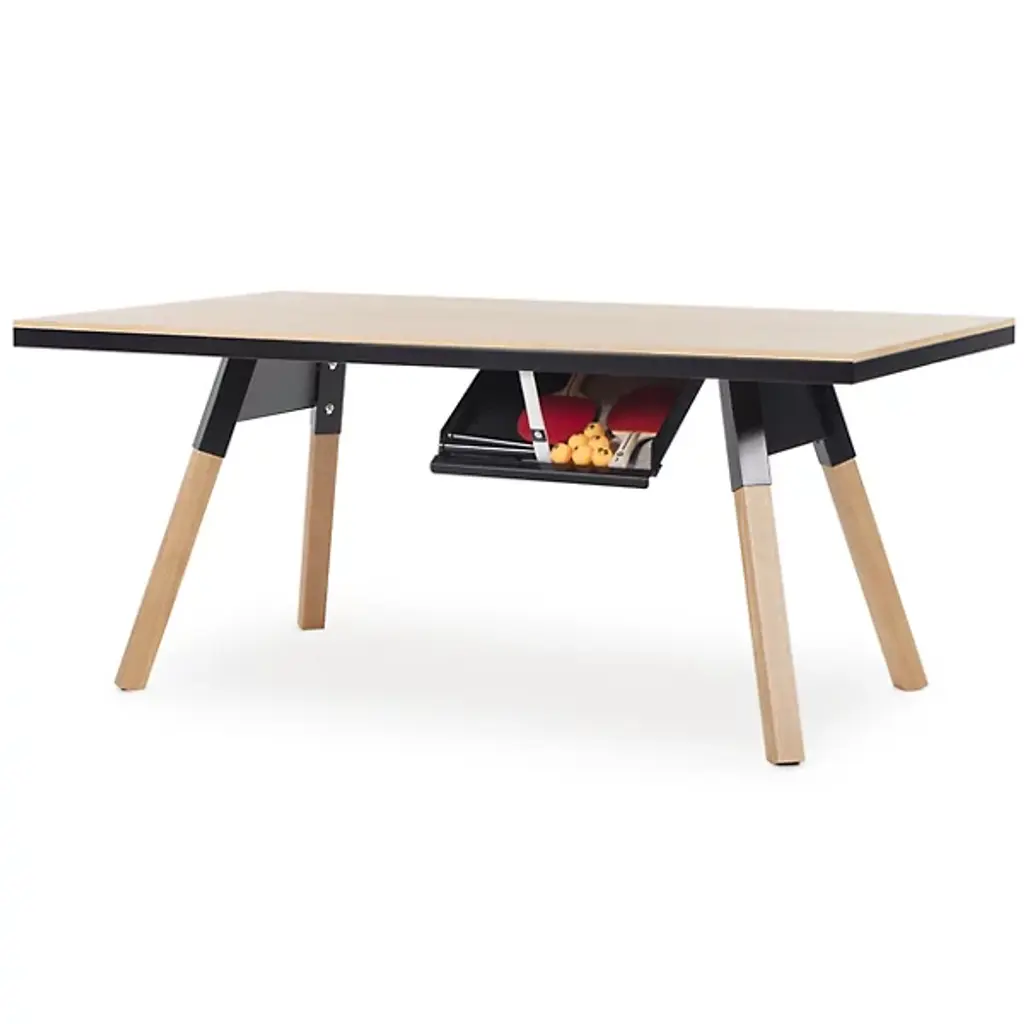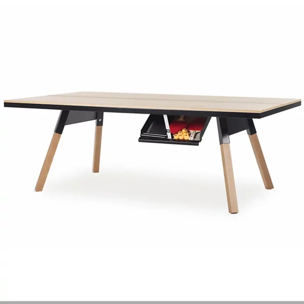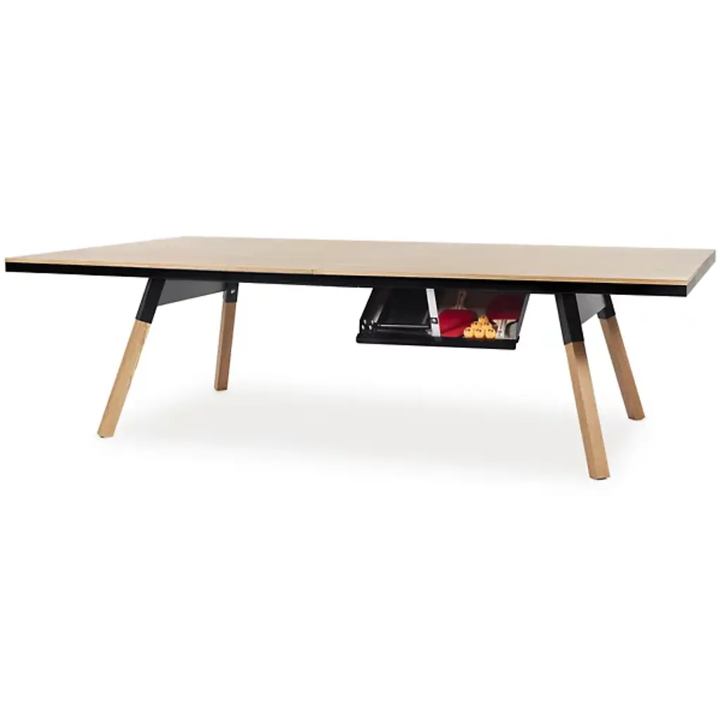 Everyone needs a little play now and then. Luckily, the You and Me Oak Ping Pong Table from RS Barcelona can help! This petite ping pong table easily converts into an inconspicuous dining table, so a dedicated game room isn’t needed to join the fun. The net, bats, and balls can be stored away in a low-profile side drawer that closes to fully conceal its playful identity. Constructed from robust steel with a durable cataphoretic paint coating, this table expertly balances sport and style.