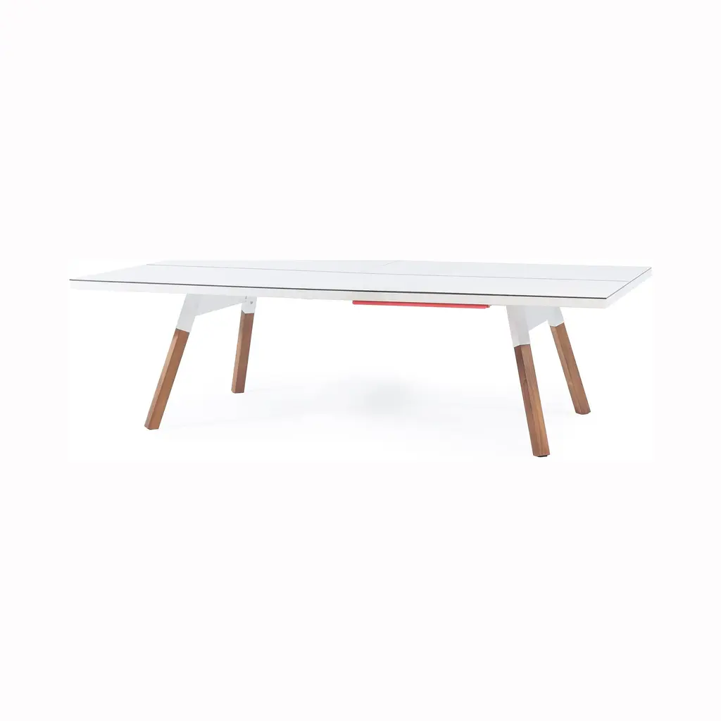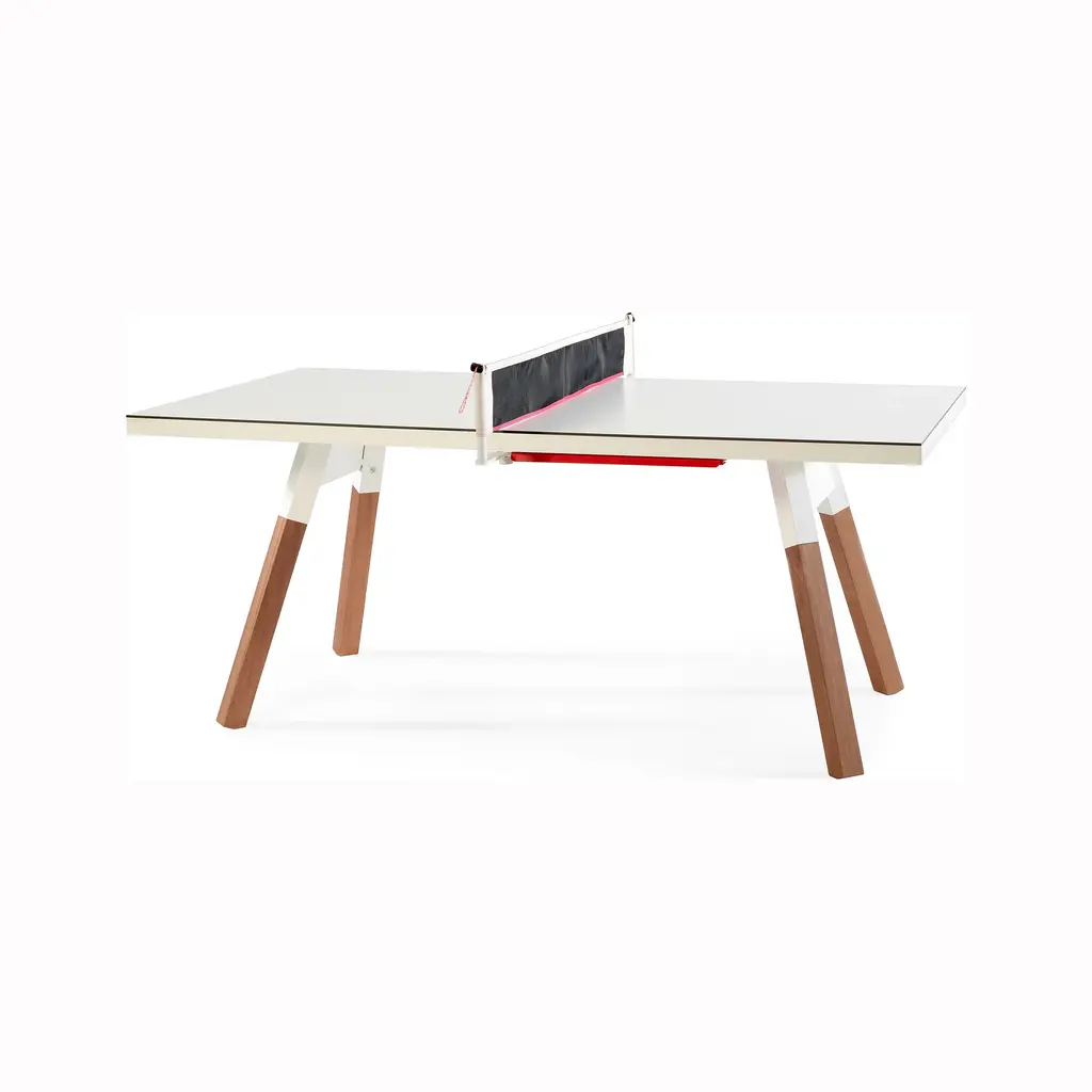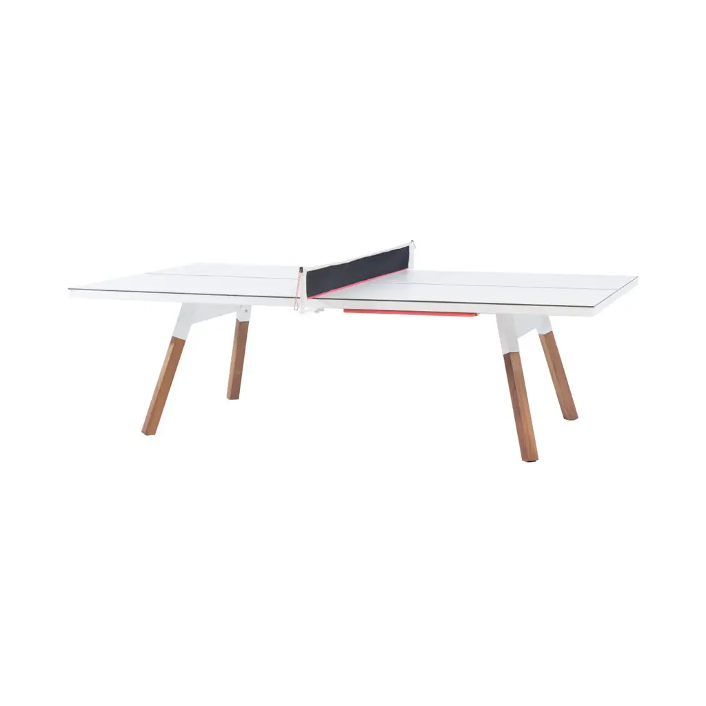 Bring high-end gaming to your favorite indoor and outdoor entertainment areas with the You and Me Ping Pong Table from RS Barcelona. Incredibly versatile, this game table is sleek and stylish enough to be used as a dining table, conference table, or at-home workspace, for the perfect balance of function and beauty. Highlights *Please note, the drawer and net have pink detailing. The black table is for outdoor covered use, and should be used with protective cover to prevent discoloration by the sun. Set includes one net, two paddles and six ping pong balls.
