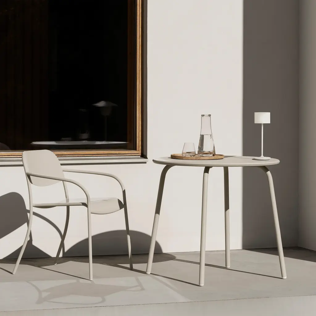 Enhance any outdoor space with the versatile Yua Round Bistro table that suits both compact and more spacious areas. Designed by Kaschkasch, the Blomus Yua collection is conveniently minimalist, to look at home anywhere, and it’s also crafted to last. This round bistro table has four subtly angled legs and a circular top. The design is light and airy but this outdoor table is made to handle the heat – or the rain – with grace. Manufactured from galvanized steel, the Yua series features a weatherproof, powder-coated finish to look like new for a long time. Pair the Blomus Yua Outdoor Round Bistro Table with the Yua armchairs from the same collection to create a welcoming lounge and dining area outdoors.