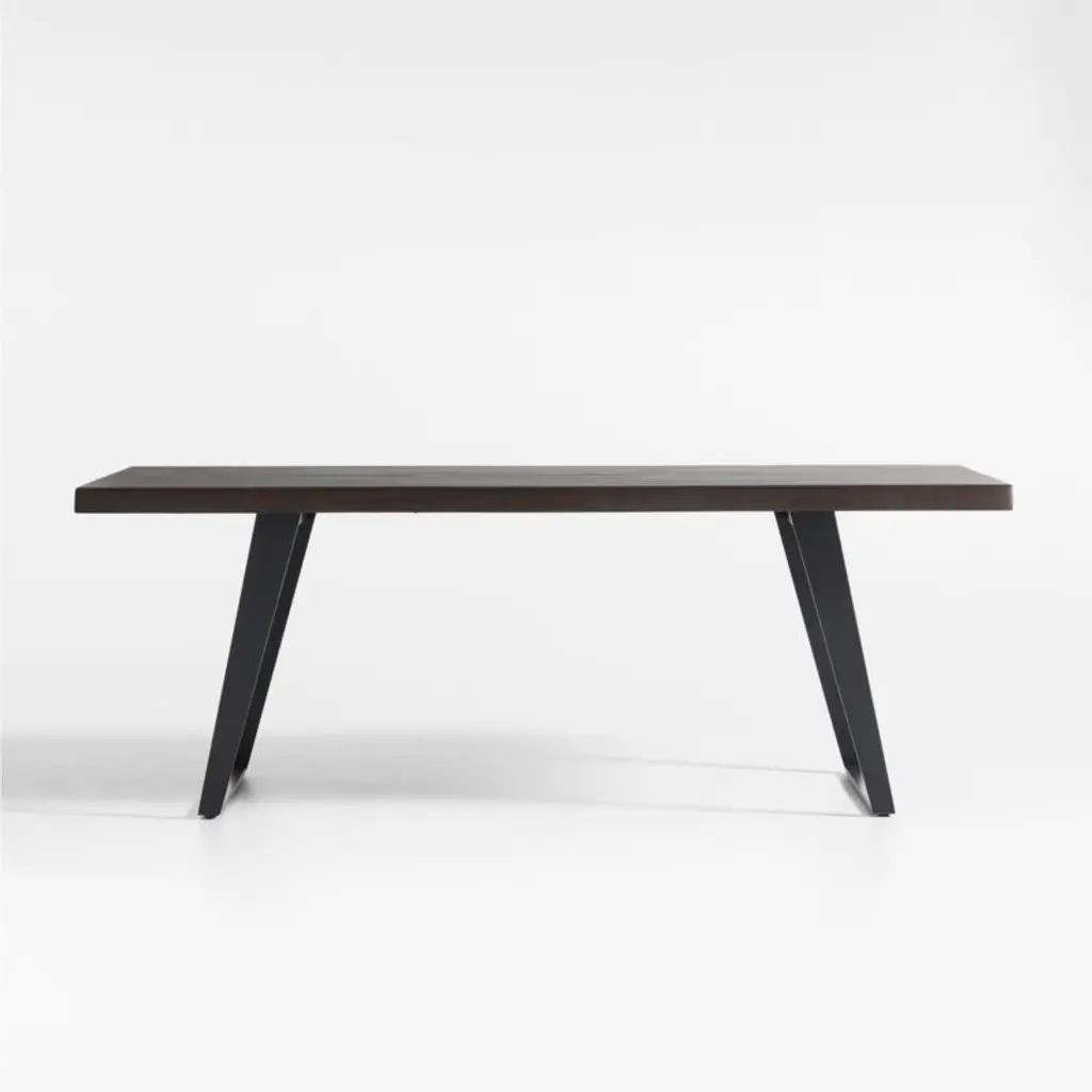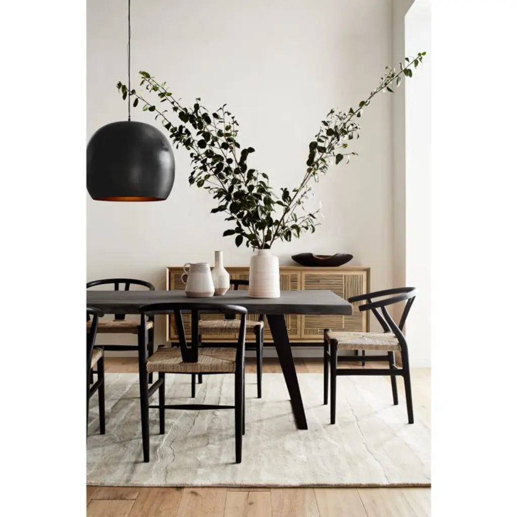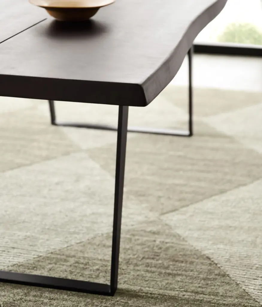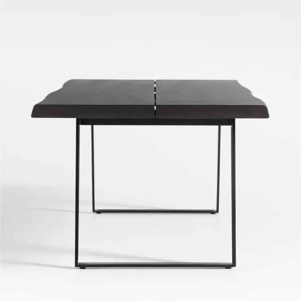 Updated with a black finish for a sleek silhouette, our best-selling Yukon dining table revels in the fascinating knots, splits and distinct grain patterns unique to natural acacia wood. Made with a blend of modern machinery and traditional hand craftsmanship, the table features planks of live-edge acacia wood tinted black and braced with the form-meets-function accent of expertly fashioned butterfly joints. Angled, U-shaped steel legs finished in matte antique black provide sturdy support and modern counterpoint to the organically shaped top. Due to its natural characteristics, no Yukon table is alike, making each one a unique celebration of the inherent beauty of natural wood.