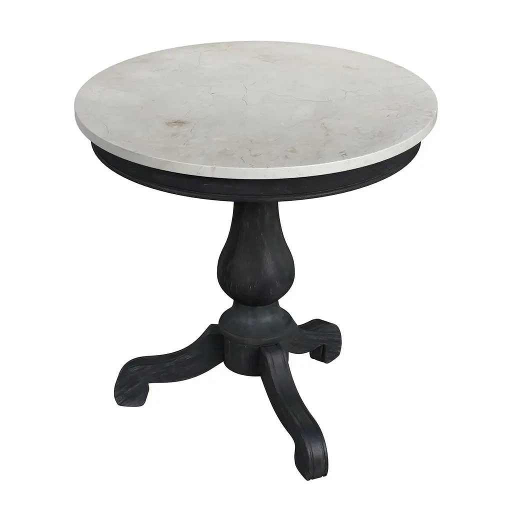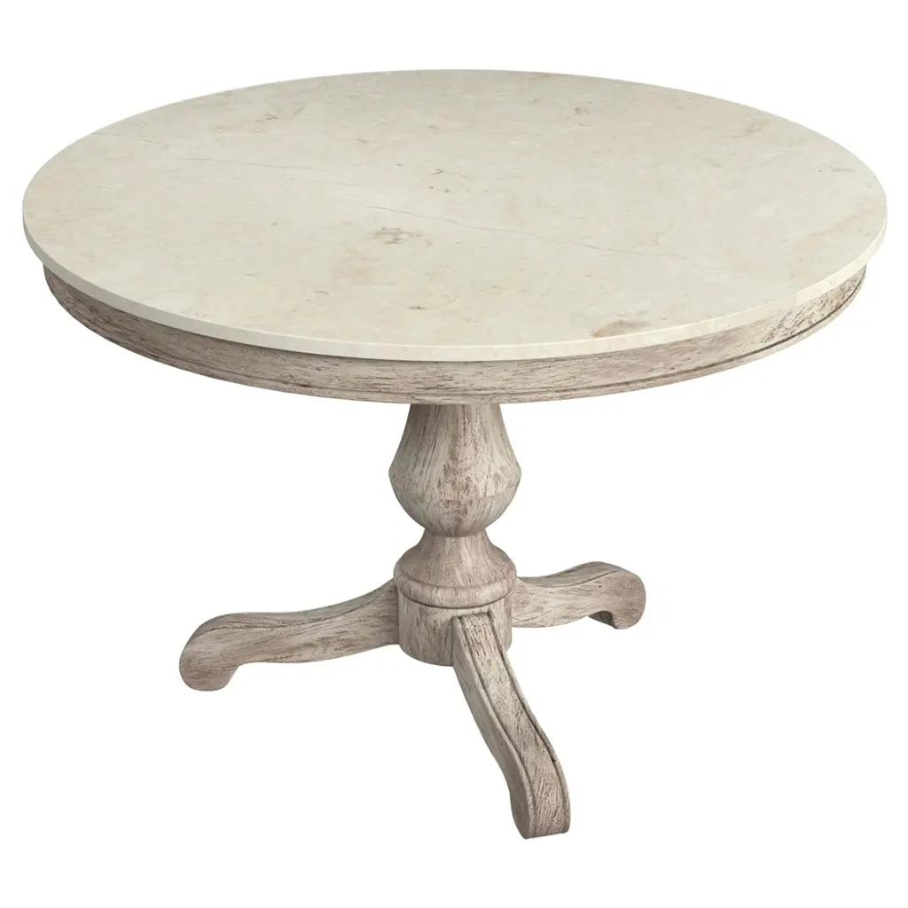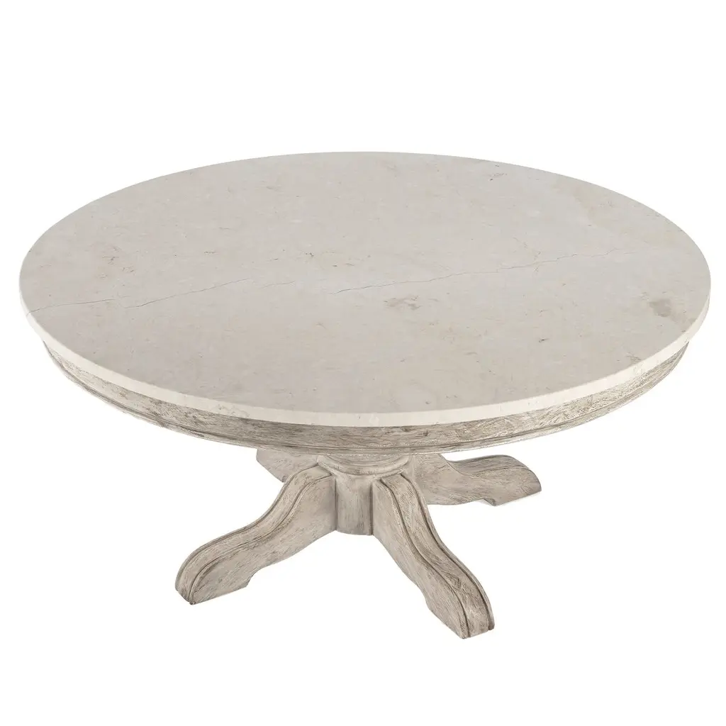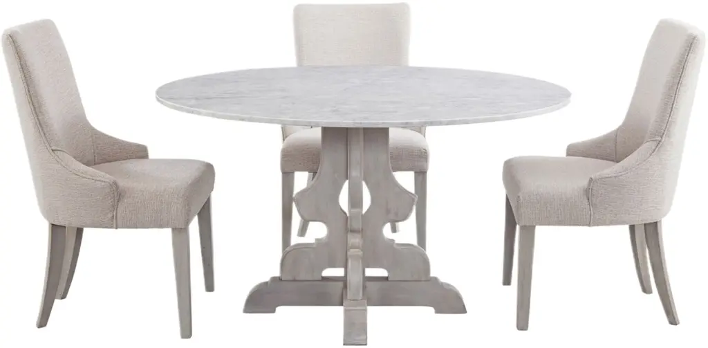 Zachary 48" Round Marble Top Dining Table, White/washed Grey
