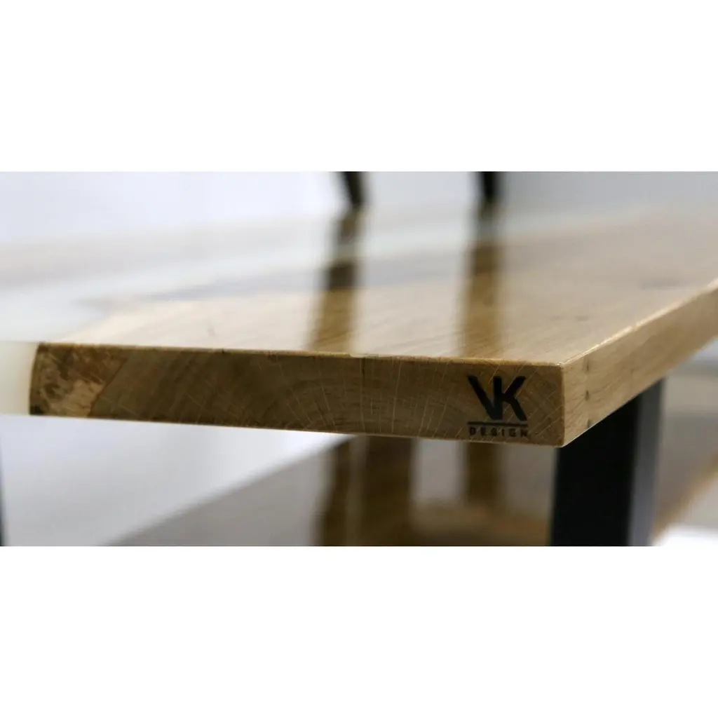 Zennit Dining Table by KV DesignOne Of A KindDimensions: D 70 x W 180 x H 65 cm.Materials: European oak, metal, and epoxy.Everything is custom-made 1 of 1 edition. Please contact us.The dining table is an essential part of your home interiorAs we celebrate, share special moments with family members and friends.This is why we believe it is essential to create not only a strong and durable dining table but for it to also be warm and create a comforting environment. Our aim at KV Is to accentuate these exact feelings.The main feature of our dining table is not just the Solid wood but the combination of the aforementioned with epoxy resin, which fits it immaculately.KV Design is a team of professionals, and we believe that our custom-made furniture is not simply part of the interior design. We use high-quality wood and epoxy resin in the production of unique state-of-the-art products. Our ideology is that our tables are not solely to be used for their main purpose, but also to be observed and enjoyed as a piece of art. Hence, we combine functionality and elegance into the creation of a captivating and complex product. For the production of our furniture, we strive to select the highest quality materials from leading brands on the market. We invest endless hours of manual labor in the making of every single element part of our furniture. However, everyorder is strictly delivered within no more than 4 weeks.