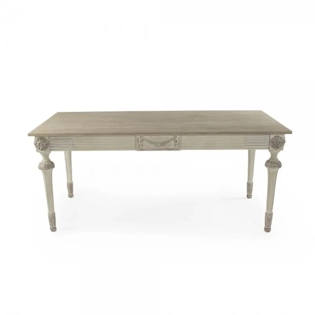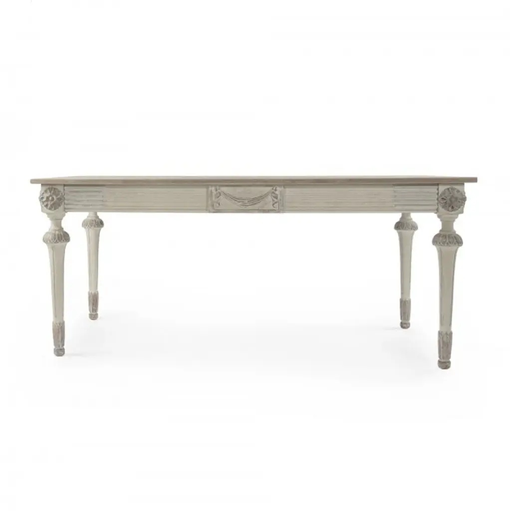 Zentique Bastian Dining Table Dry Natural Finish Top, Distressed Off White