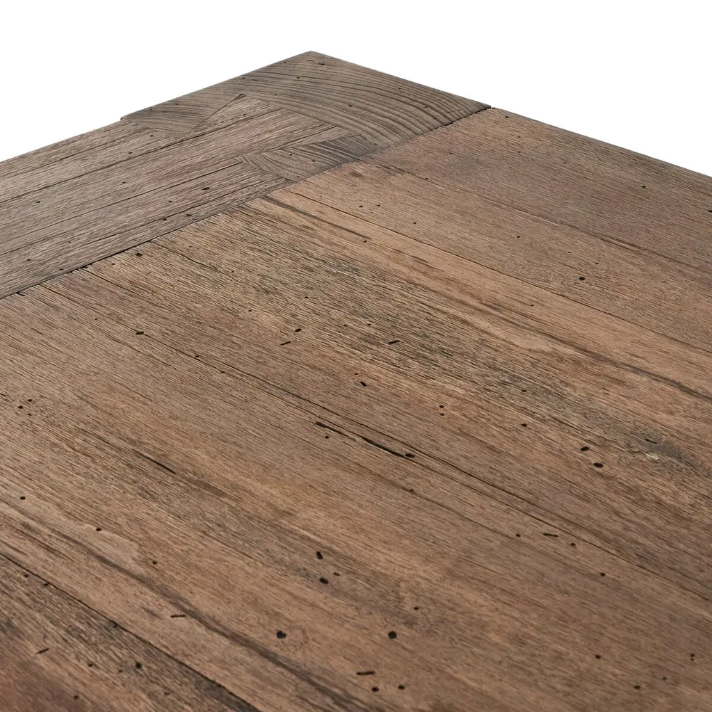 The Zuri Dining Table is a masterful blend of style and functionality, crafted from thick-cut oak veneer with a faux rustic finish that beautifully emulates wormwood. This clean-lined table is designed with chunky squared legs and intricate dovetail joinery detailing, offering a robust and elegant centerpiece for your dining space. With ample space, it comfortably accommodates up to 10 guests, making it perfect for gatherings and celebrations.