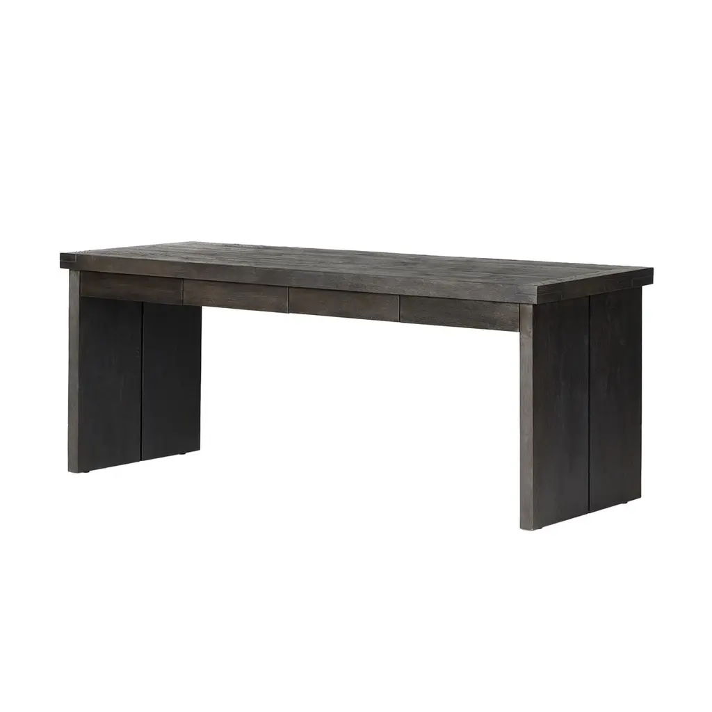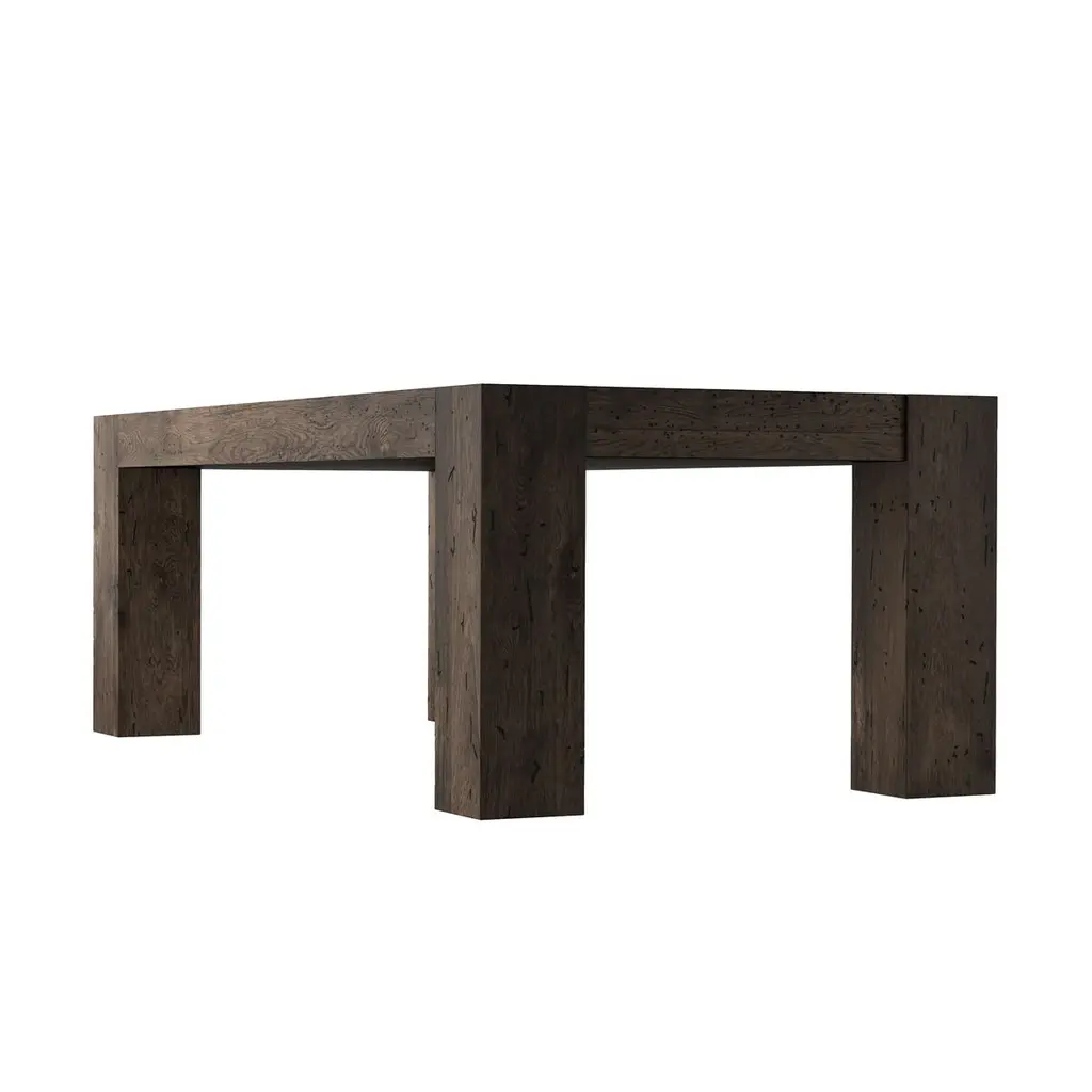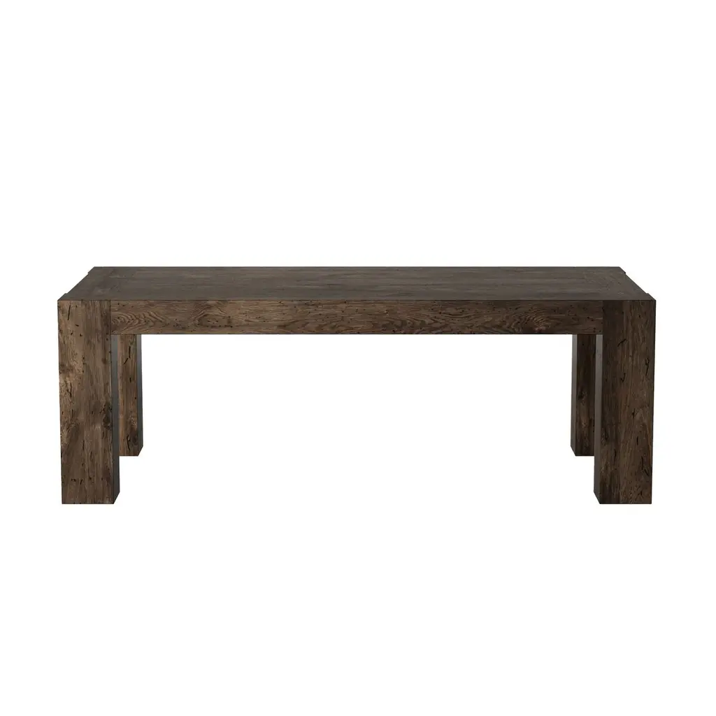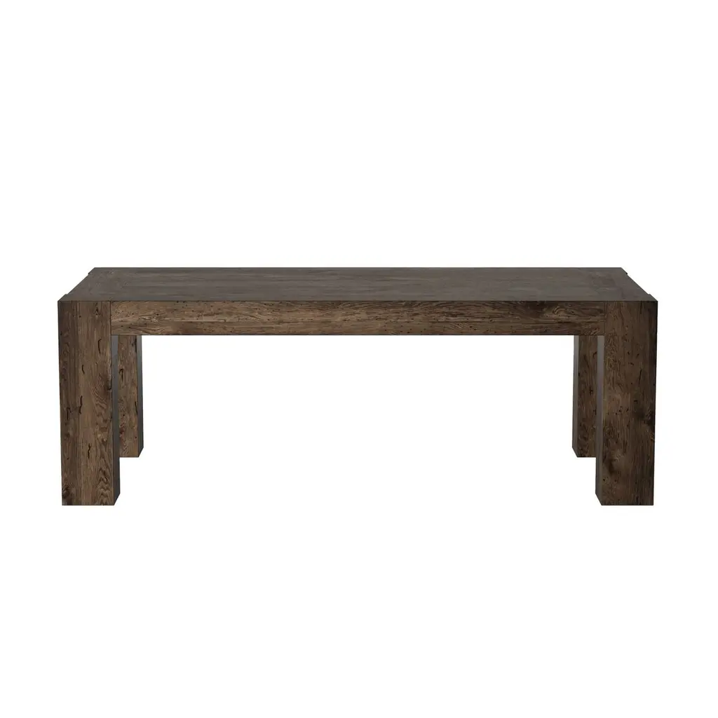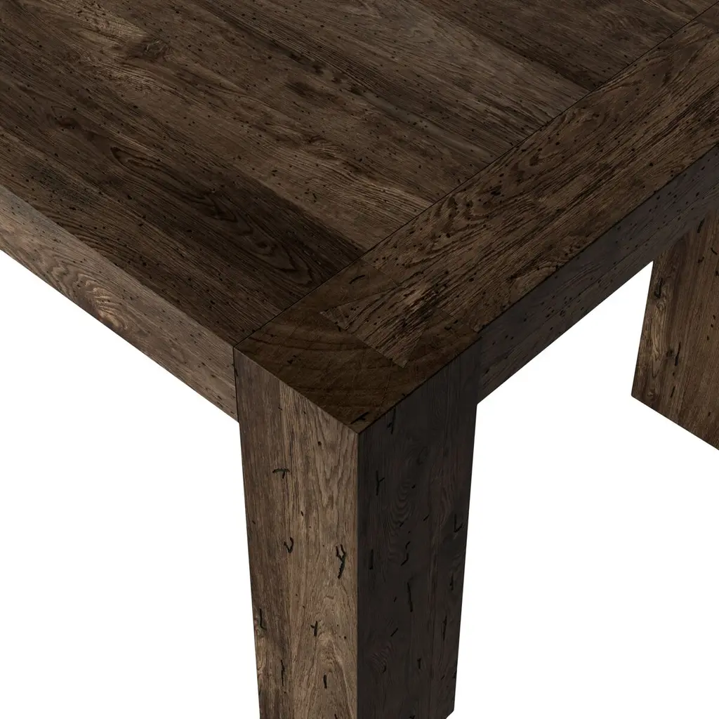 The Zuri Dining Table is a masterful blend of style and functionality, crafted from thick-cut oak veneer with a faux rustic finish that beautifully emulates wormwood. This clean-lined table is designed with chunky squared legs and intricate dovetail joinery detailing, offering a robust and elegant centerpiece for your dining space. With ample space, it comfortably accommodates up to 10 guests, making it perfect for gatherings and celebrations.