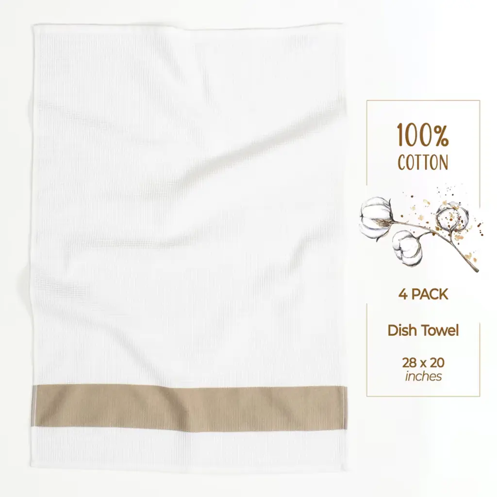 American Soft Linen 4 Packed Dish Towels, 100% Cotton Dish Cloths For Kitchen, Beige