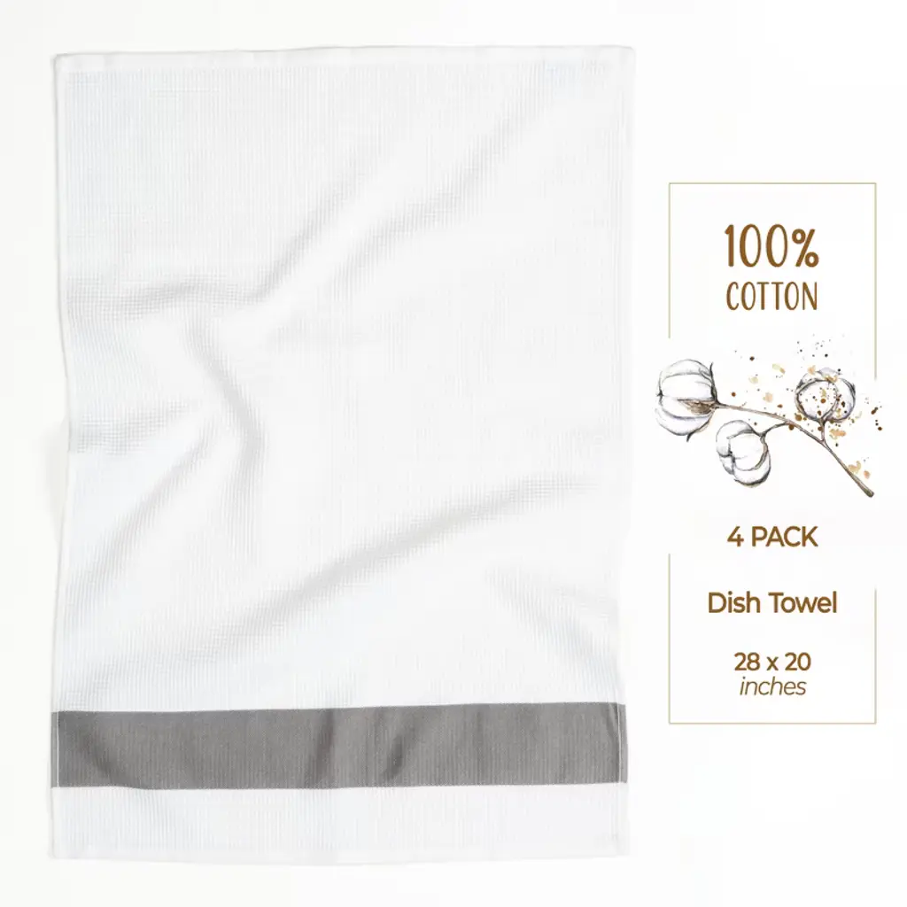American Soft Linen 4 Packed Dish Towels, 100% Cotton Dish Cloths For Kitchen, Gray