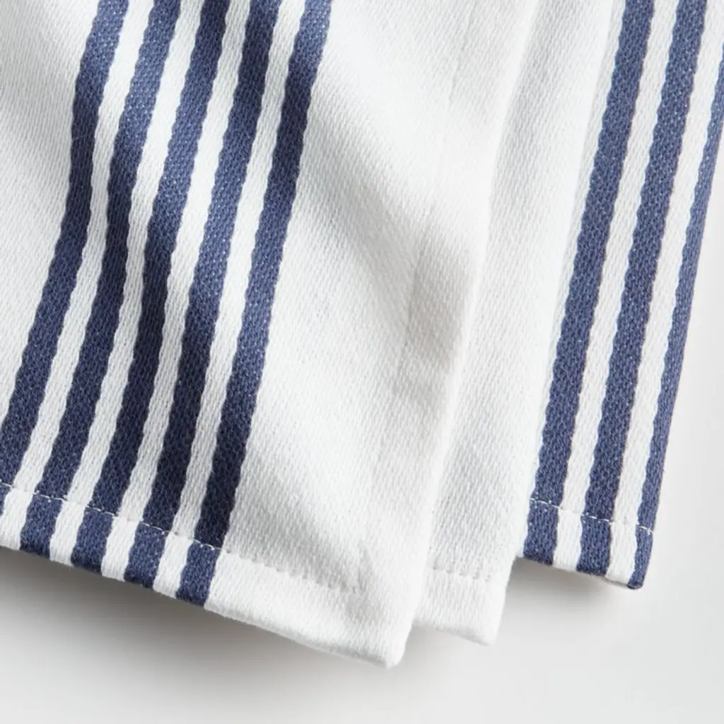 Cuisine White With Indigo Stripe Organic Cotton Dish Towels, Set Of 2