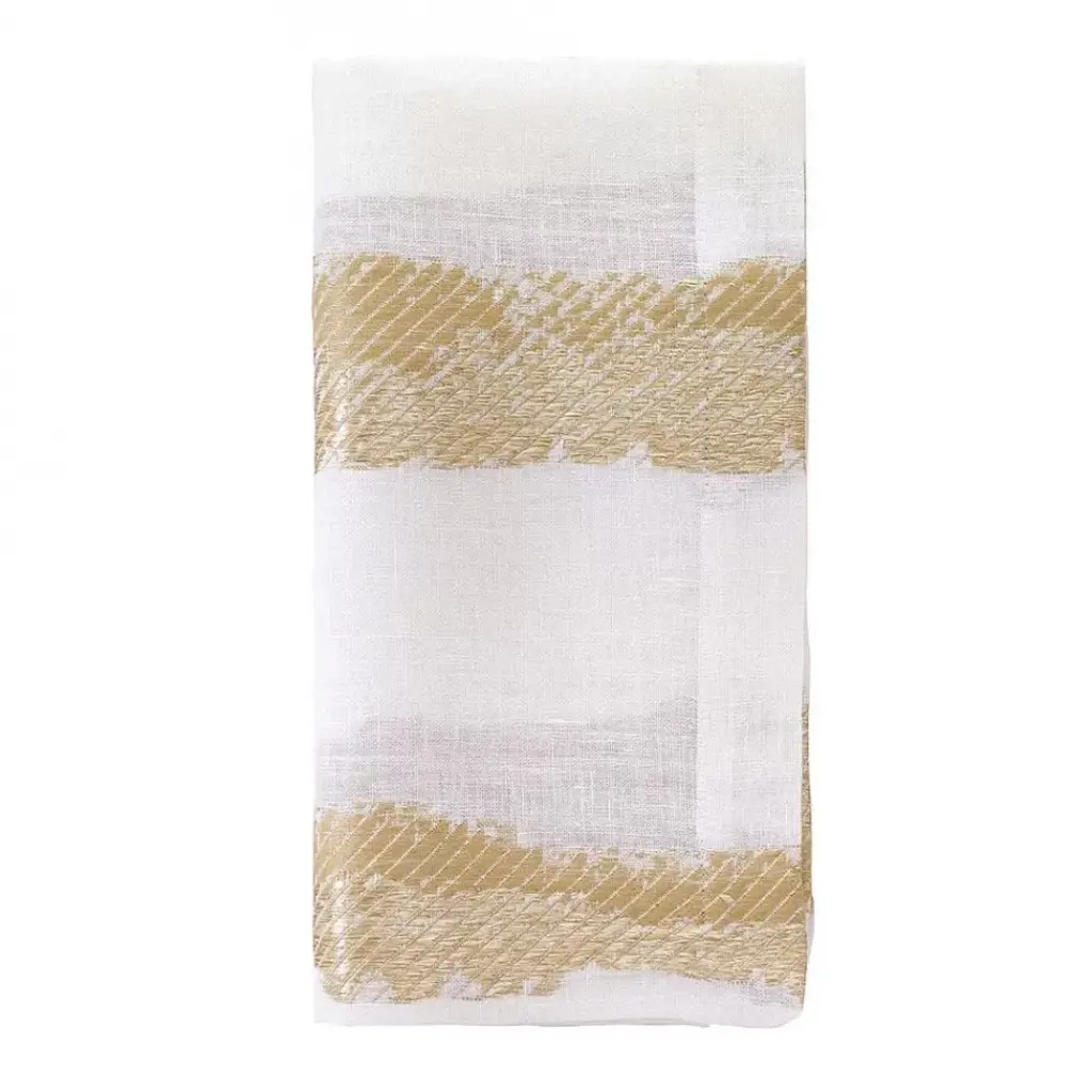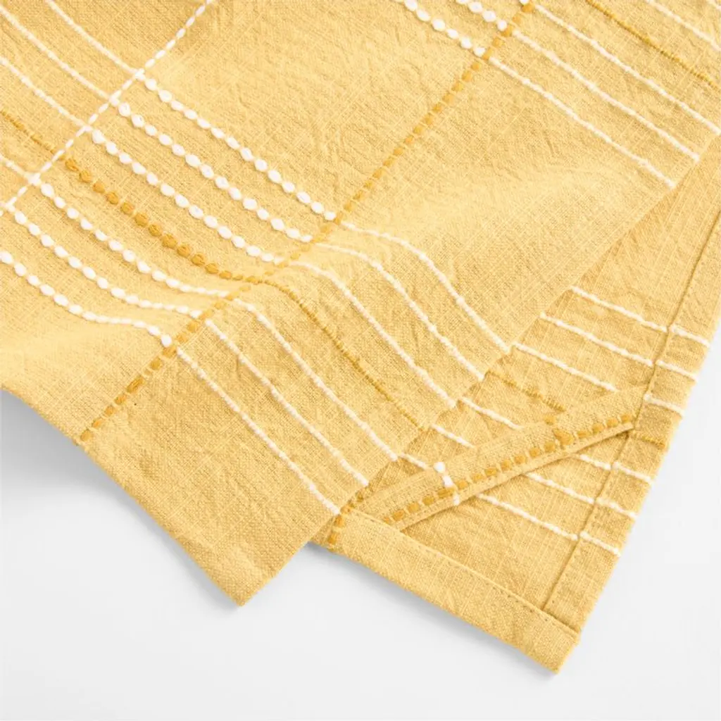 Dashed lines intersect in a unique, modern plaid on our Dash dish towels. Woven of organic cotton with a soft slubbed texture, the absorbent set dries hands, counters and dishes while adding a touch of modern organic style. The saffron and white towelsstitched in contrasting white and golden yellowpair effortlessly with many others in our collection for a coordinated kitchen.